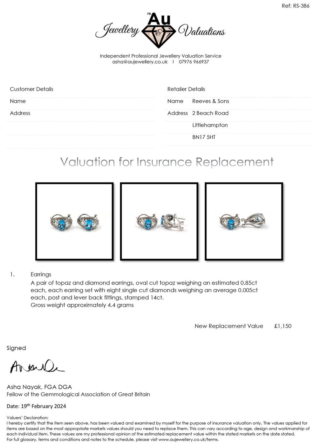 14ct white gold 1.70 carat topaz and diamond earrings with post and lever back