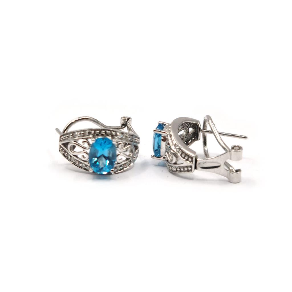 14ct white gold 1.70 carat topaz and diamond earring with post and lever back