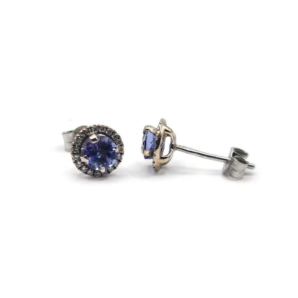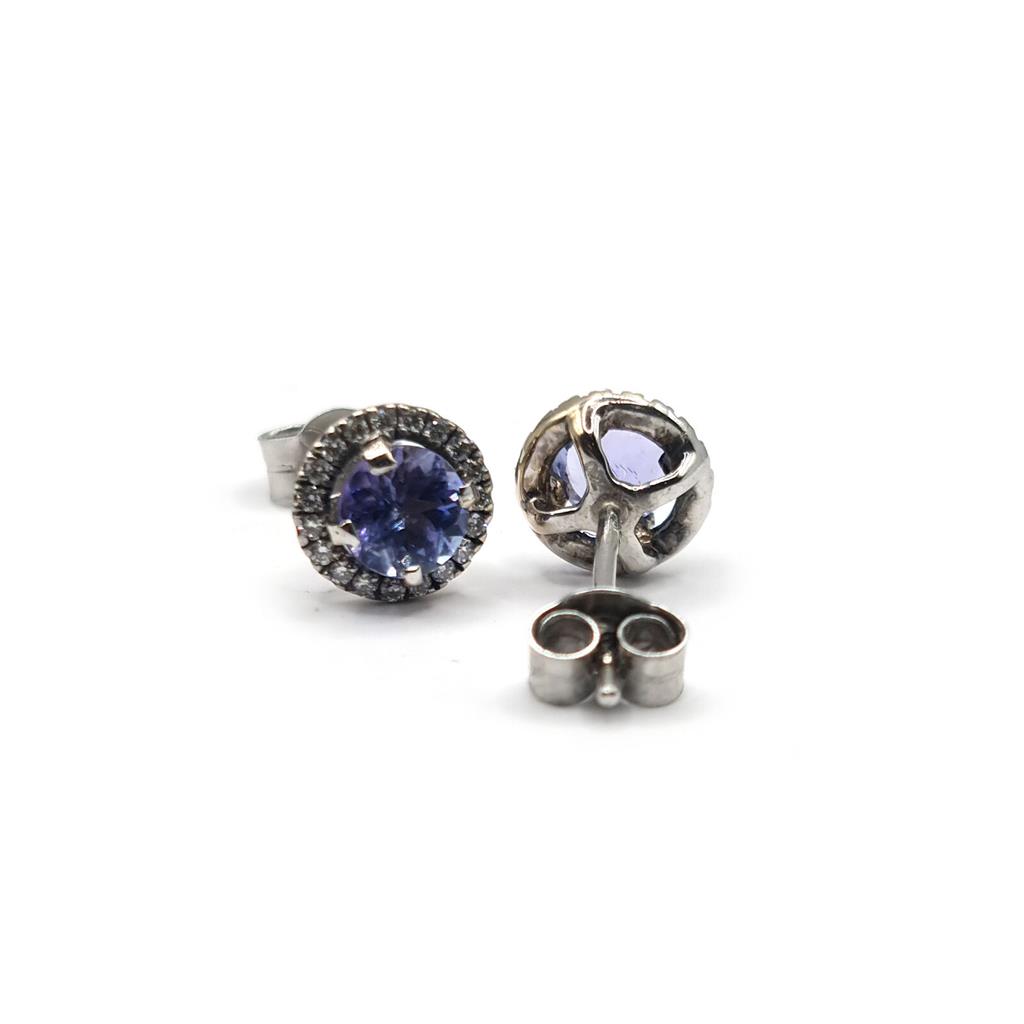 18ct white gold 0.80 carat tanzanite & 0.20 carat diamond stud earrings