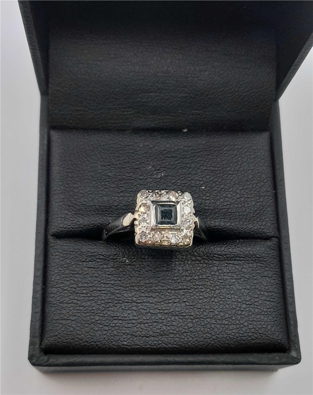 18ct White Gold Diamond and Sapphire Ring Size N 4g