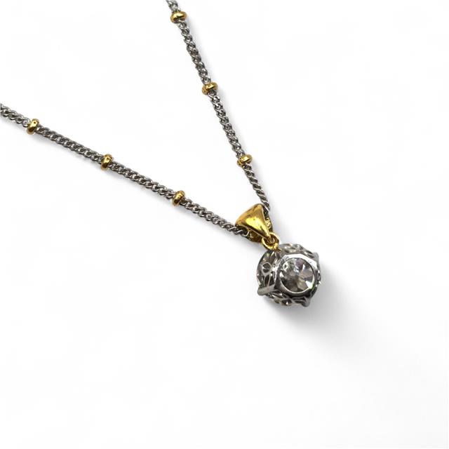 pendant is on an 18ct white gold chain (curb link) with yellow gold beads
