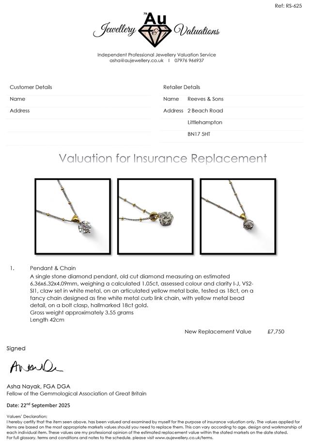 18ct white gold pendant with a yellow gold bale single stone diamond weighing an est 1.05ct, claw set