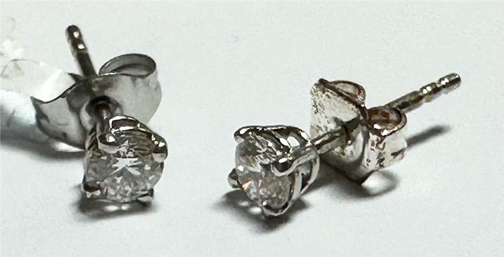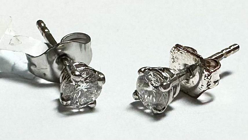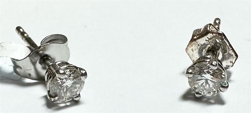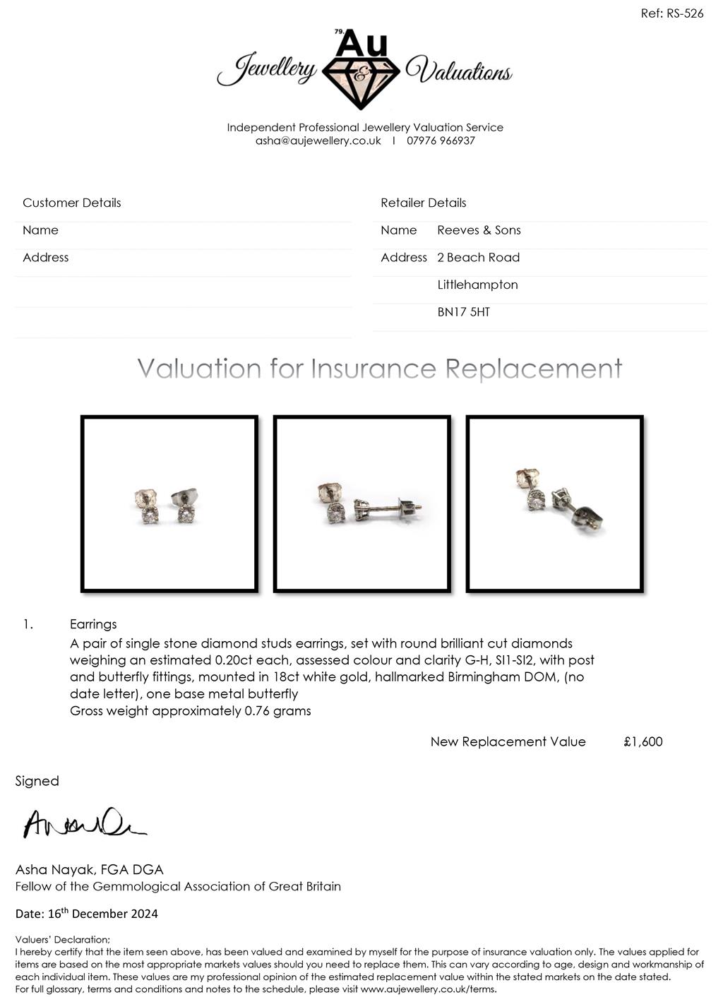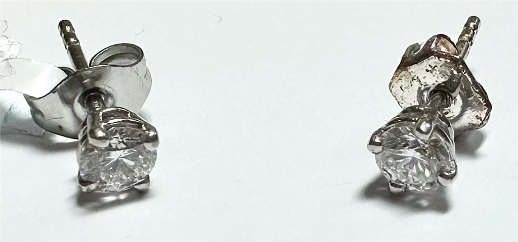 Pair of single stone diamond stud earrings, set with round brilliant cut diamonds weighing an estimated 0.20ct each, assessed colour and clarity G-H, S11-S12, with post and butterfly fittings, mounted in 18ct white gold. Hallmarked