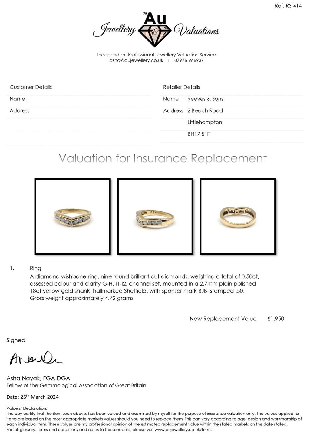 18ct yellow gold 1/2 Carat Diamond wishbone half eternity ring