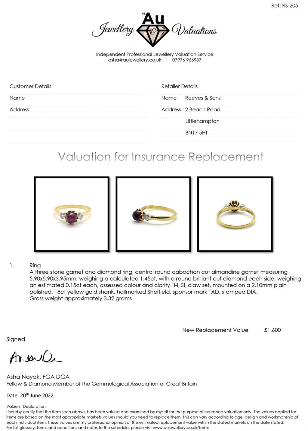 18ct yellow gold 1.45 carat garnet and 0.30 carat diamond ring