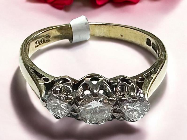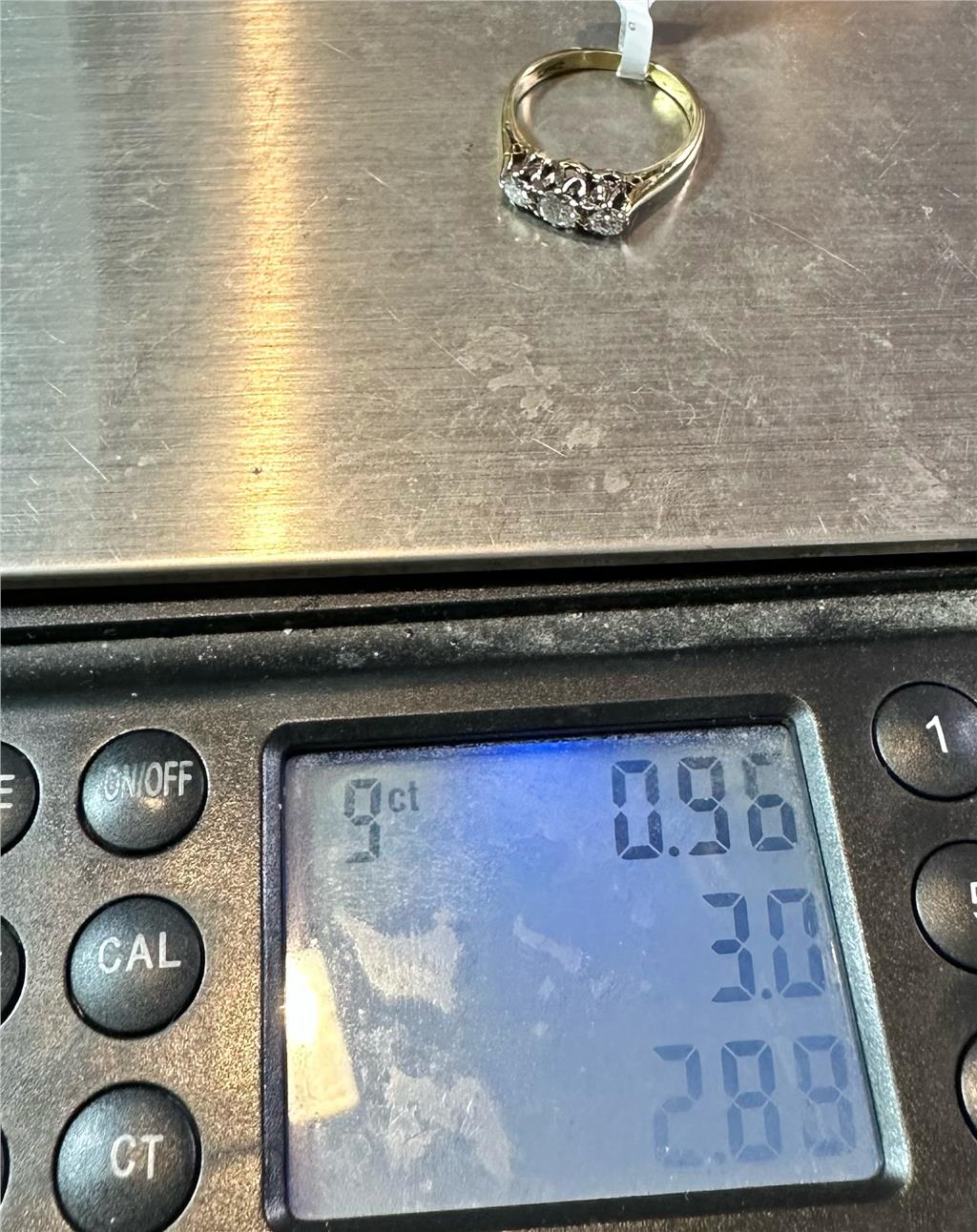 18ct yellow gold 3 diamond ring, size K (sh22244b)
