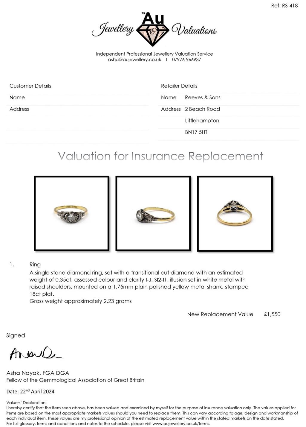 18ct yellow gold and platinum brilliant cut old diamond solitaire ring