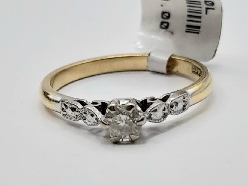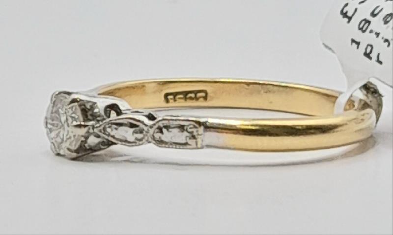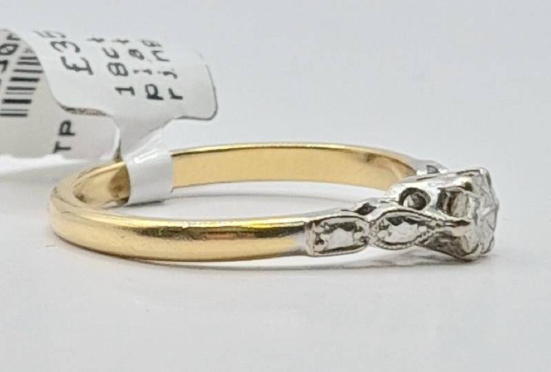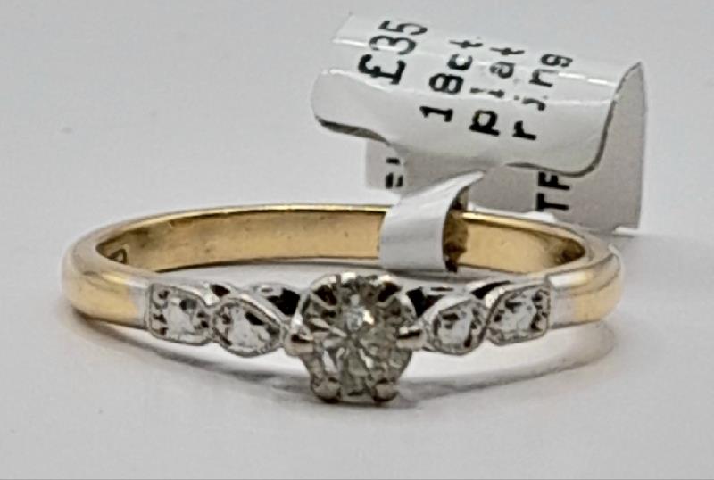 18ct Yellow gold and platinum diamond ring Size M 2.6g