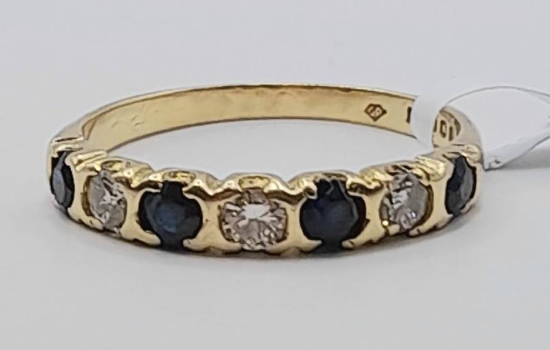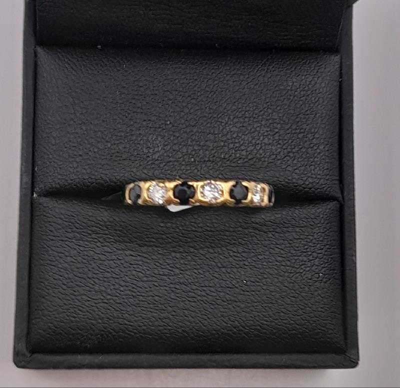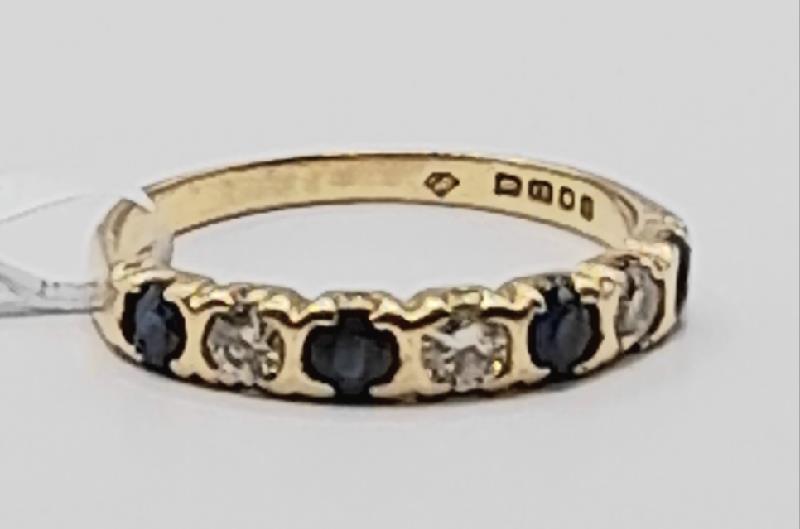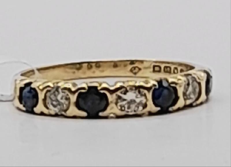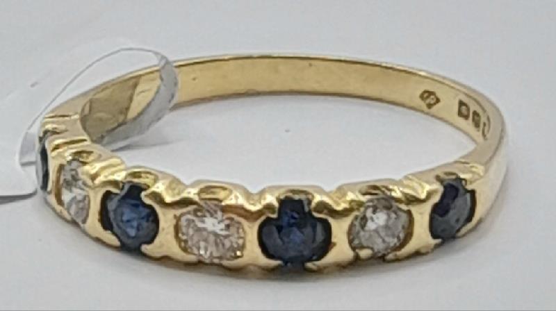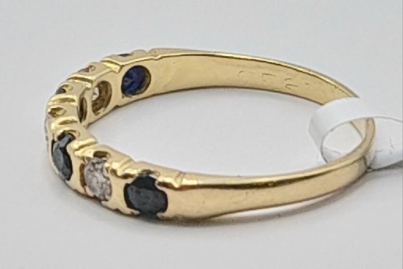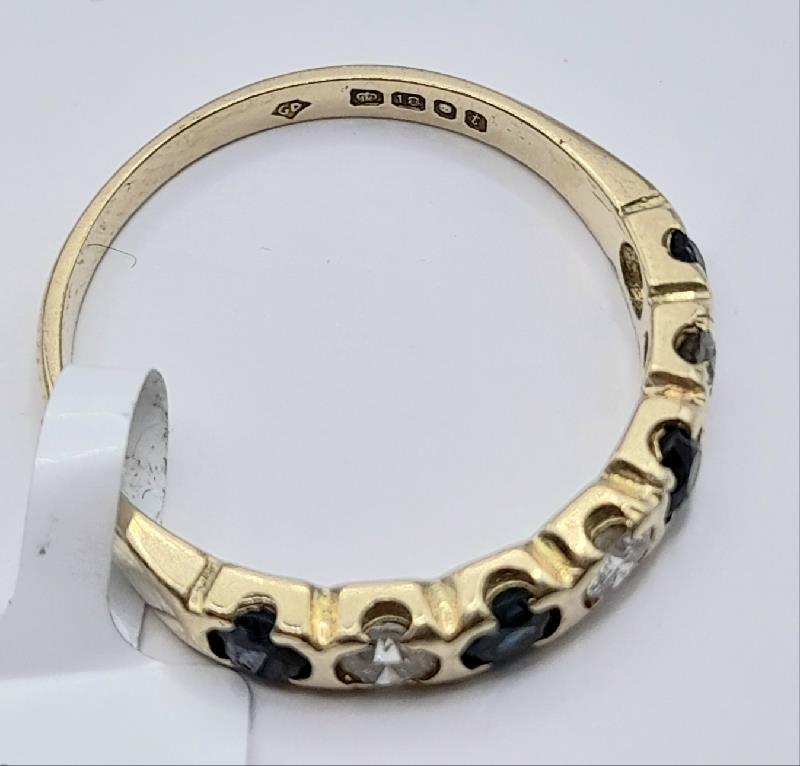 18ct Yellow Gold Diamond and Sapphire Ring Size M 1/2