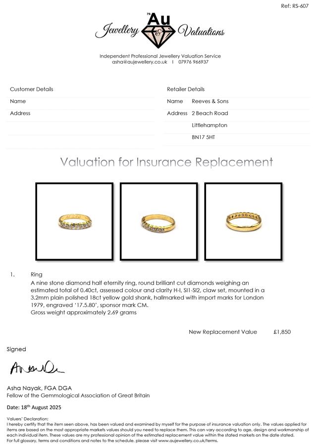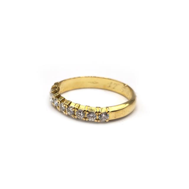 18ct yellow gold half eternity diamond ring with 9 brilliant cut diamonds weighing an est total of 0.40ct.