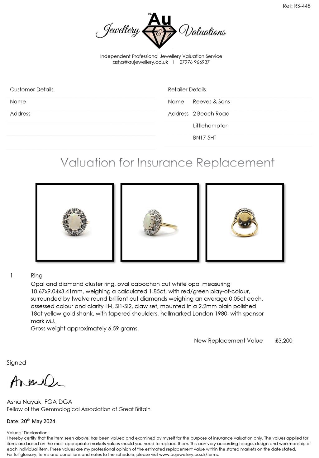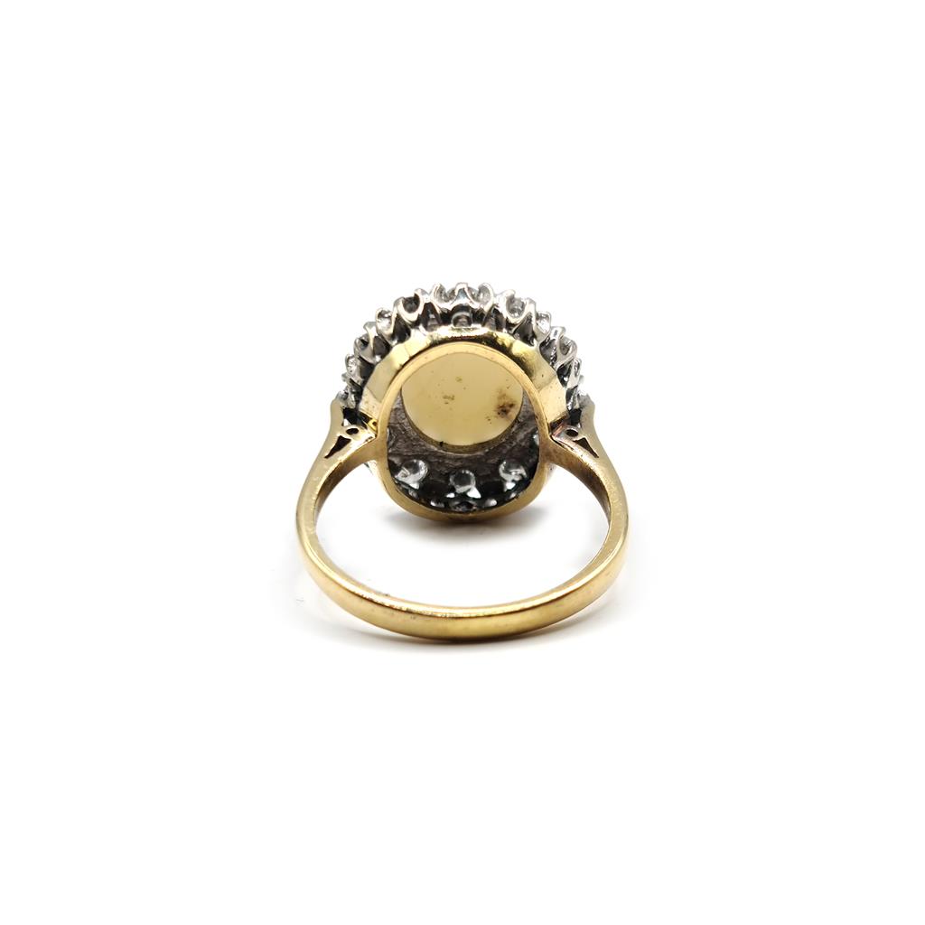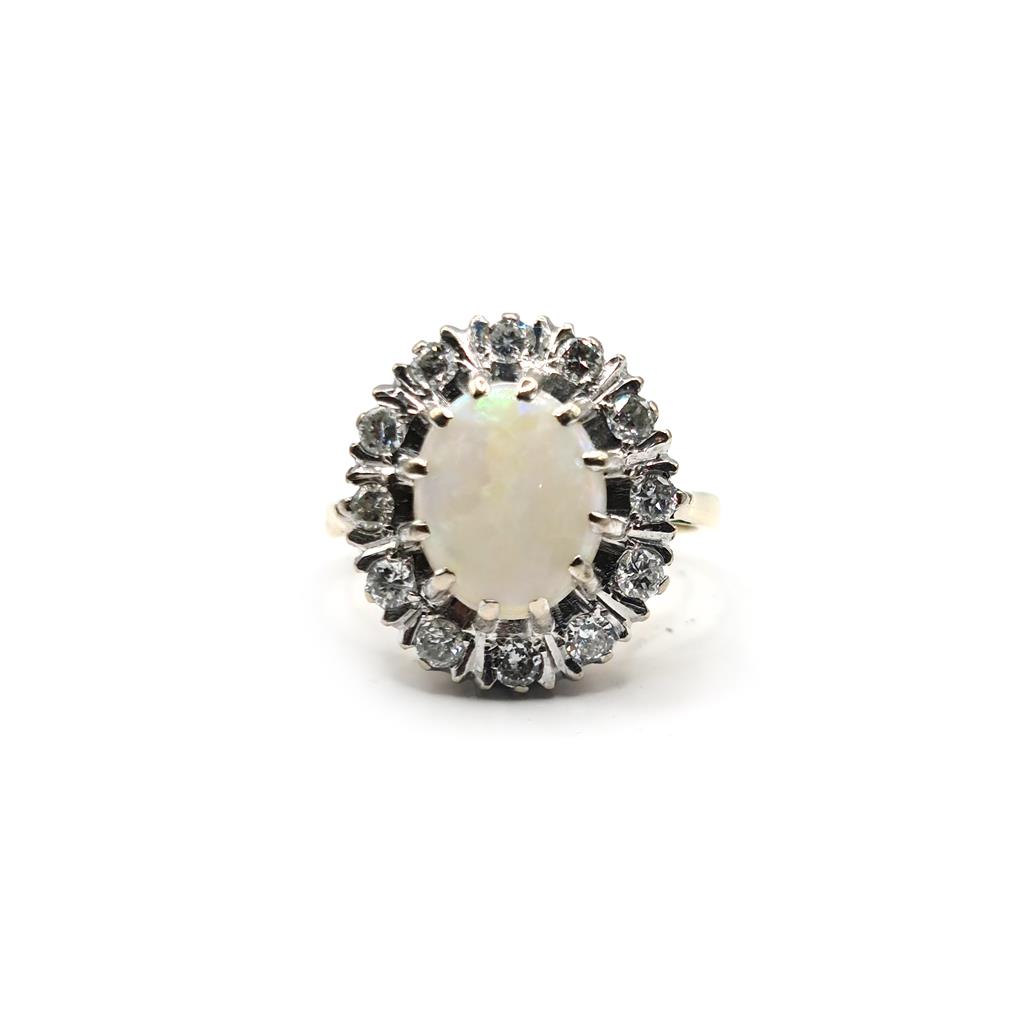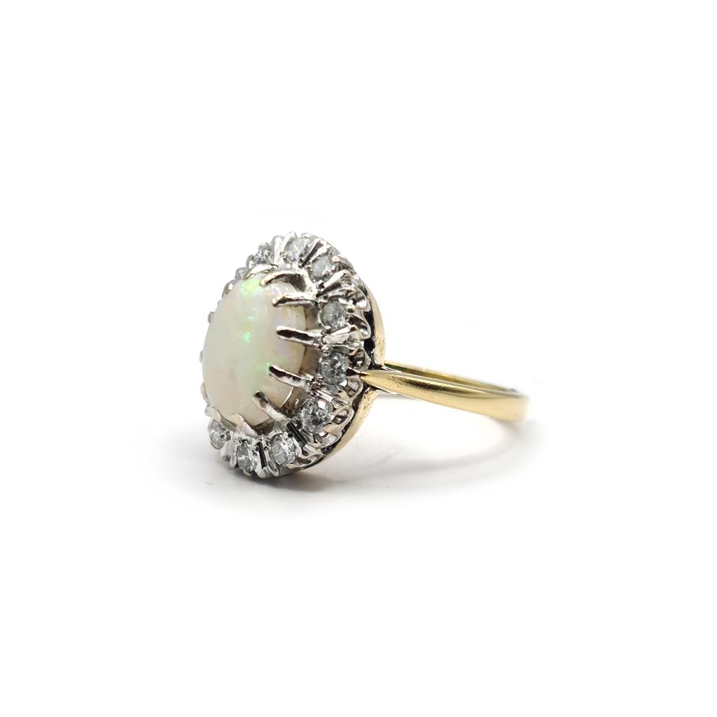18ct yellow gold oval 1.85 carat opal & 0.60 carat diamond ring