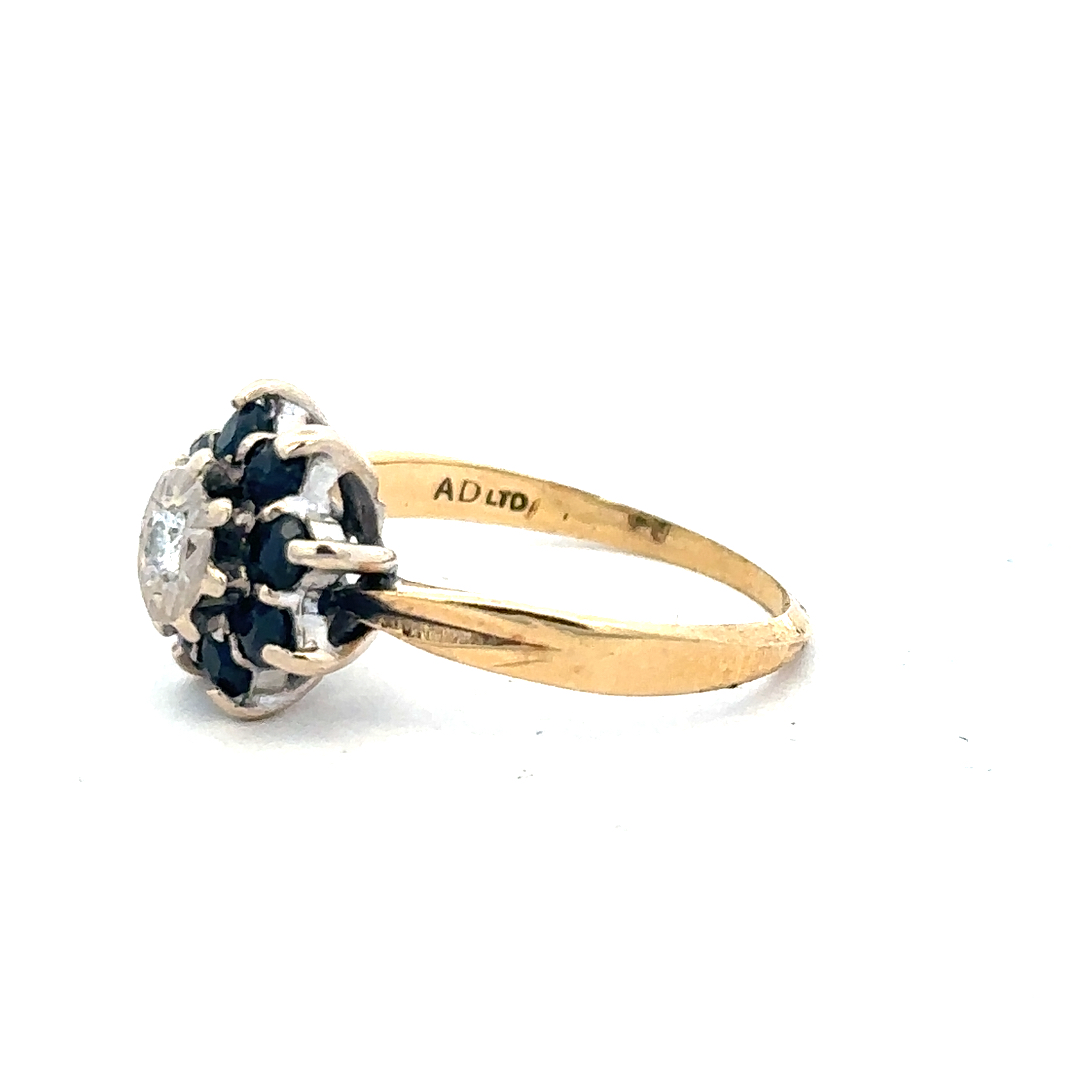 18ct Yellow Gold Sapphire And Diamond Ring, Size J, weight 2.9g (sh19843b)