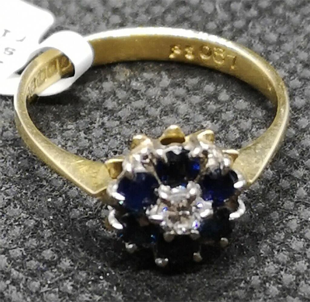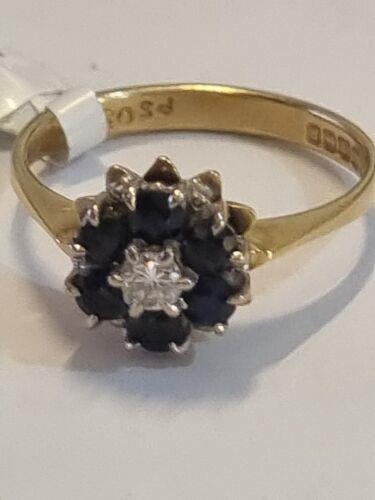 18ct Yellow Gold Sapphire And Diamond Ring Size K.