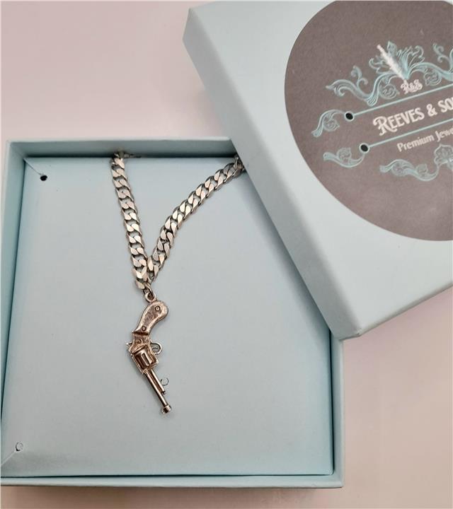 925 silver curb chain and gun pendant 17.1g sh25737b