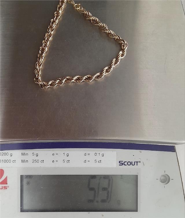 9ct gold rope bracelet 22cm 5.3g sh25179b