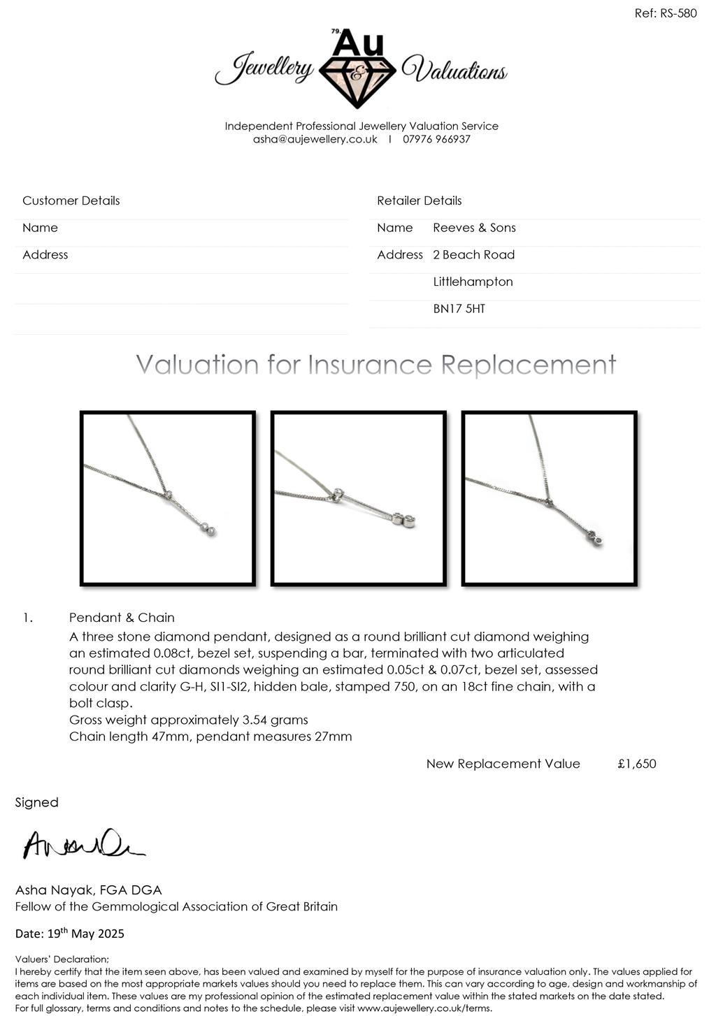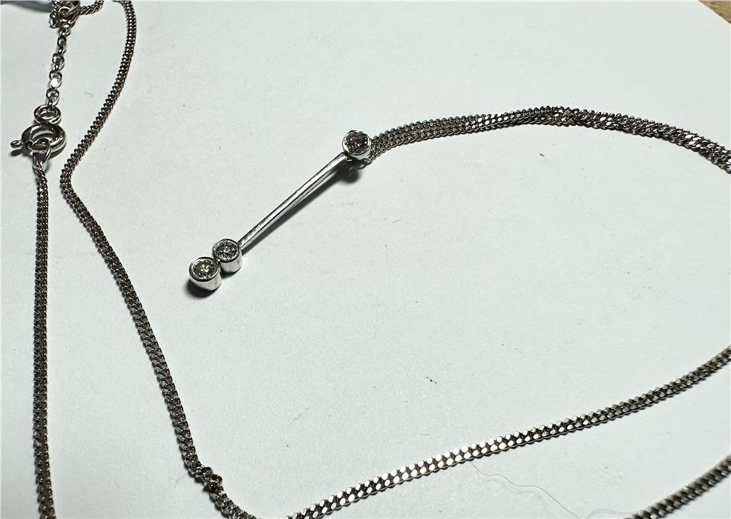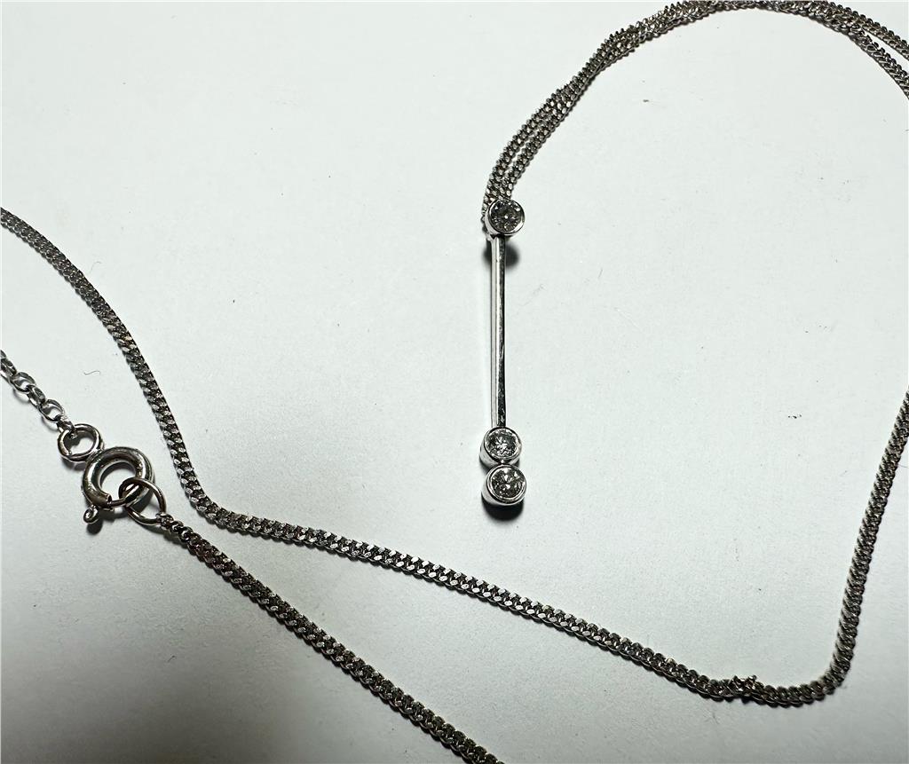 9ct white gold chain & 18ct white gold diamond pendant , weight 3.5g (sh23598b)