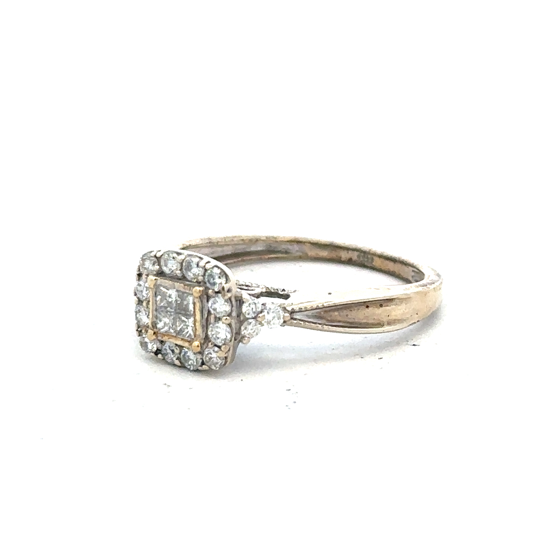 9ct White Gold Diamond Ring Size N 2.3g