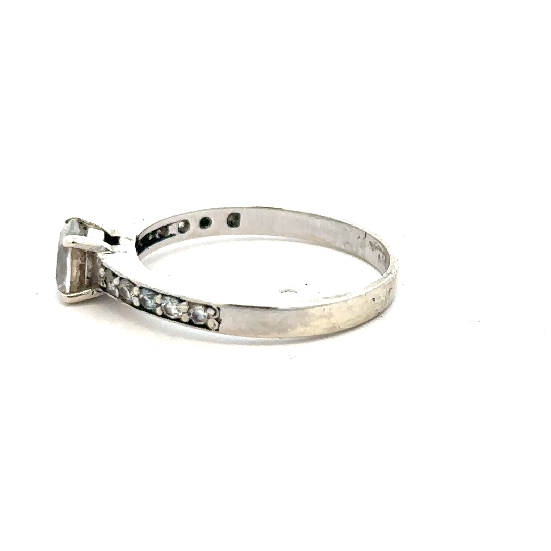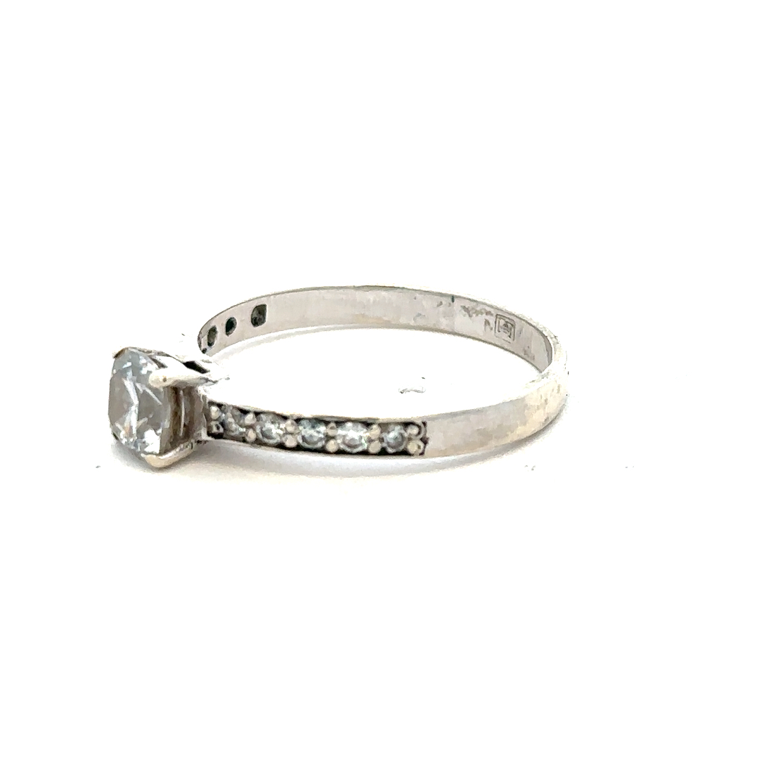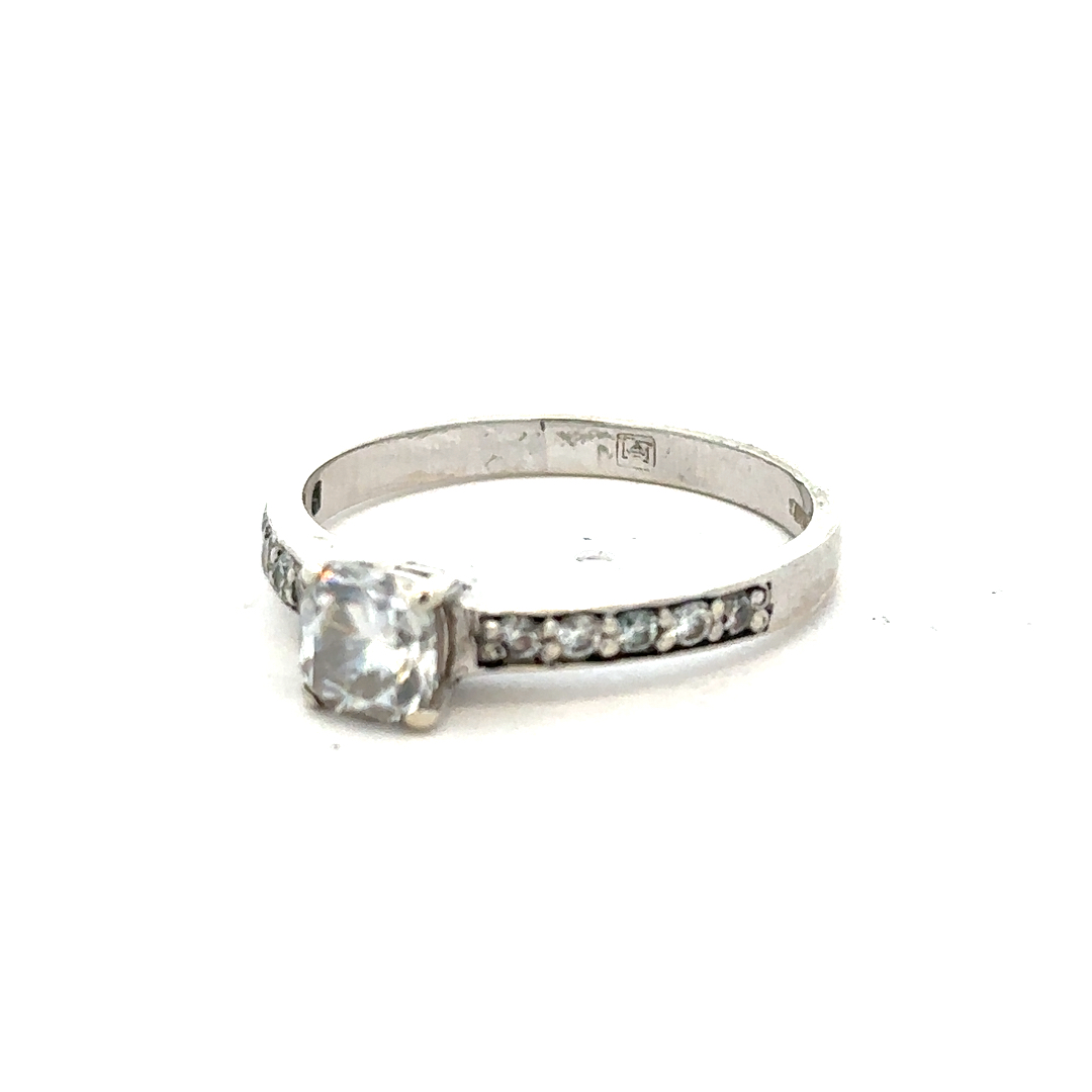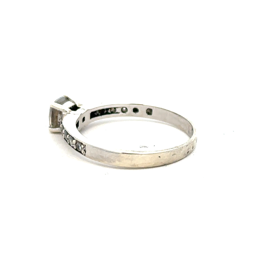 9ct white gold mossainte ring size R