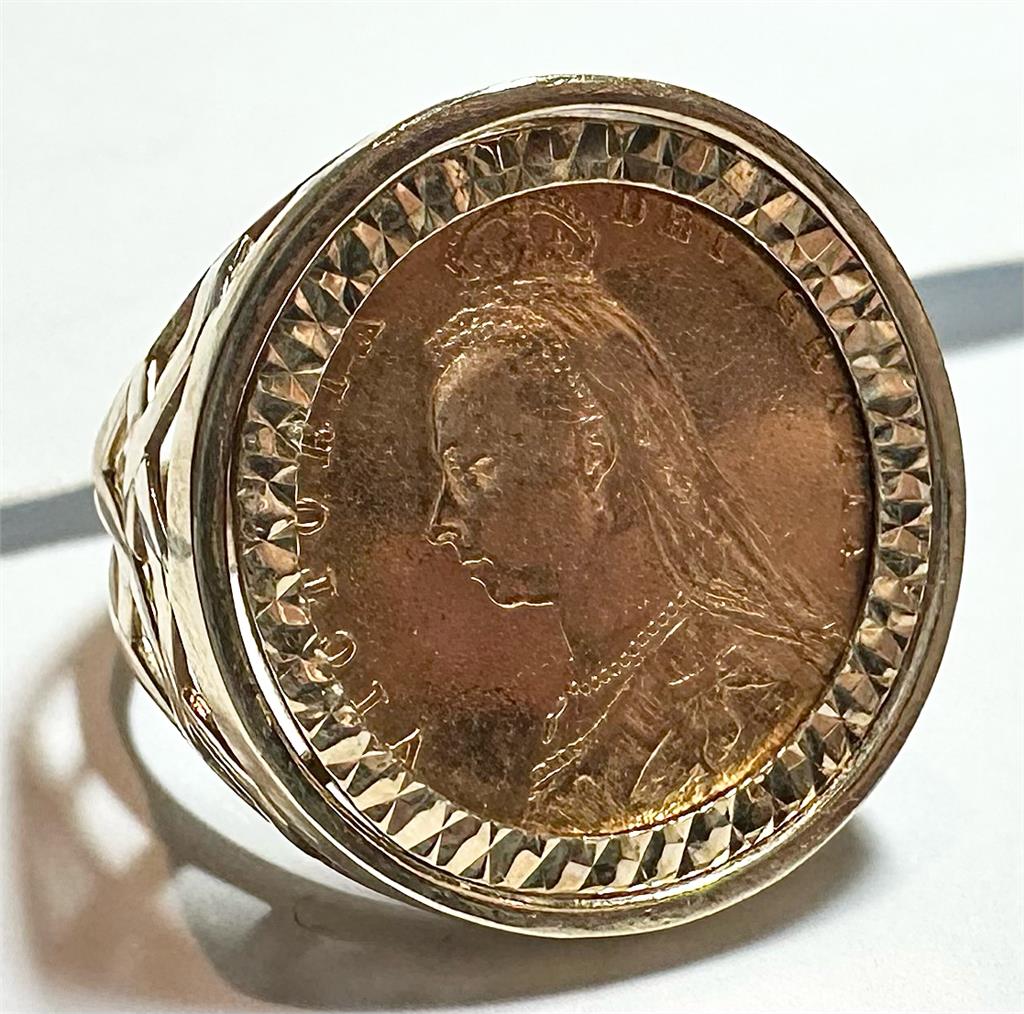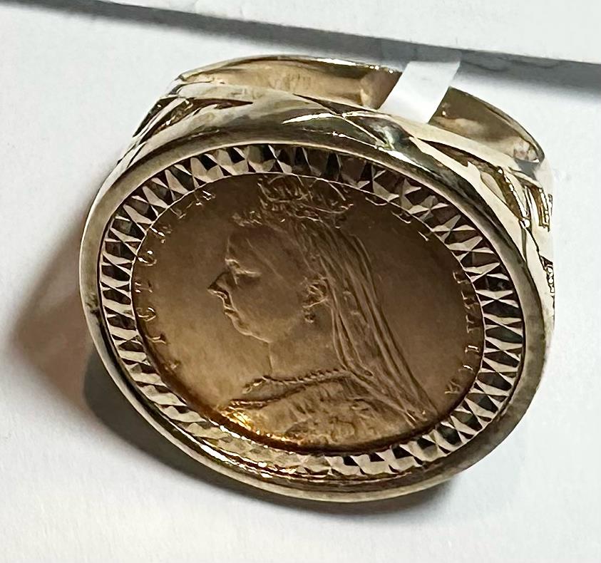 9ct yellow gold 1896 half Soverign ring