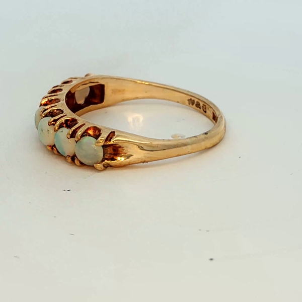 9ct yellow gold 7 stone opal ring, hallmarked (sh23511l)