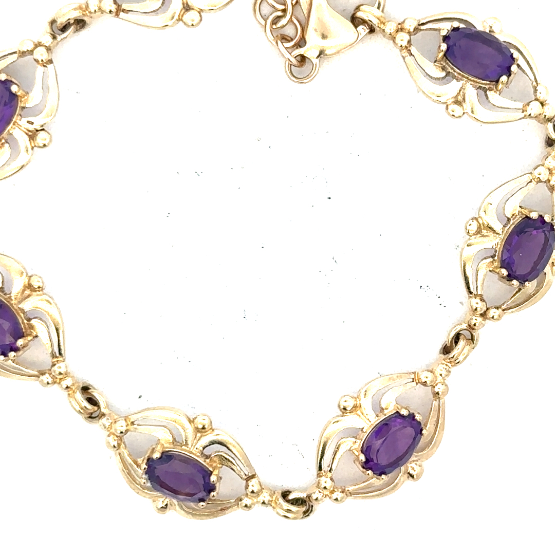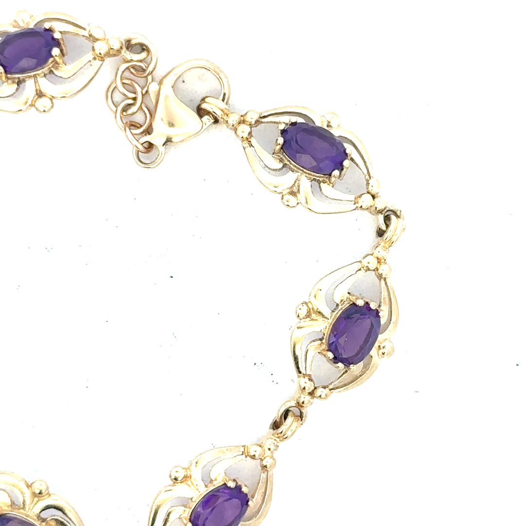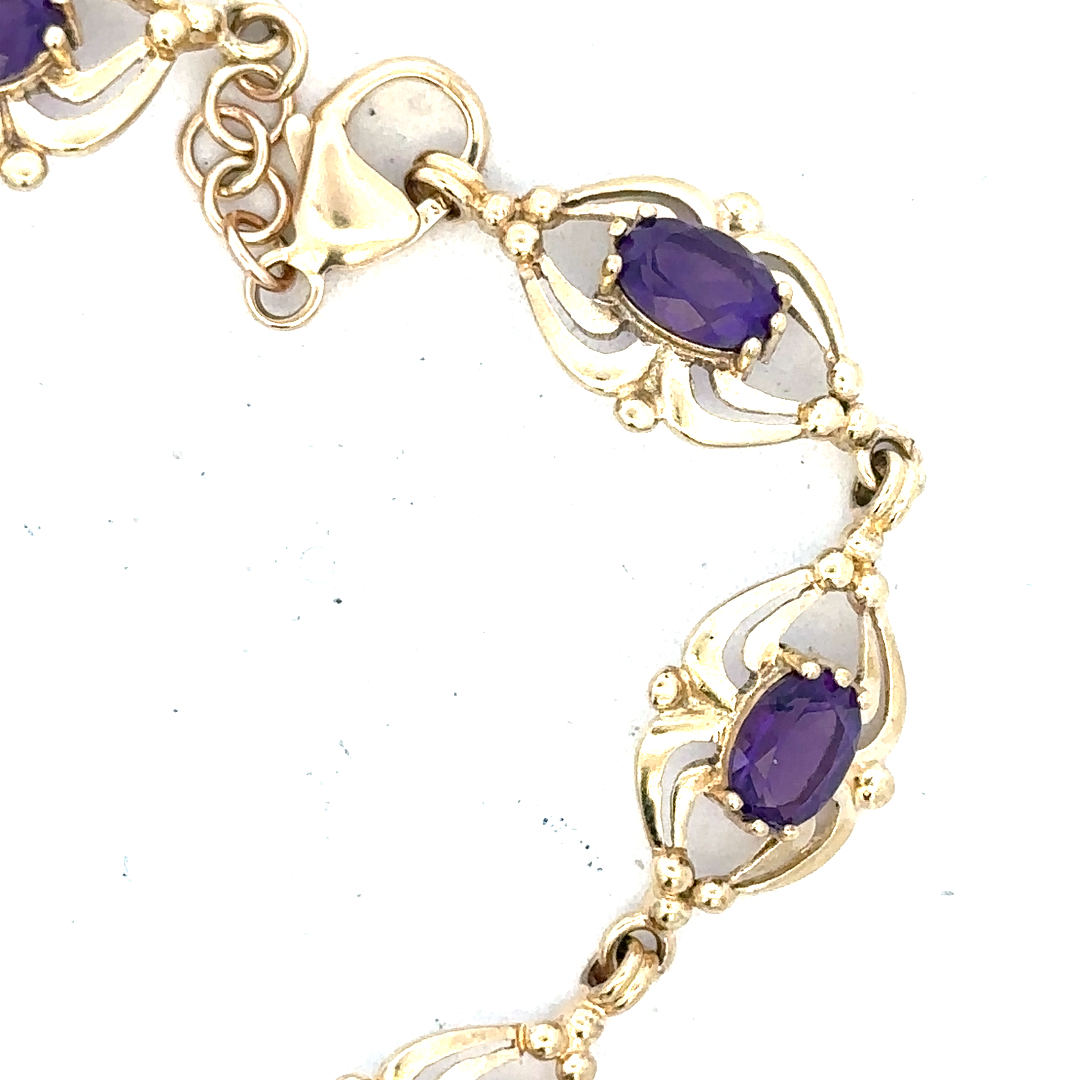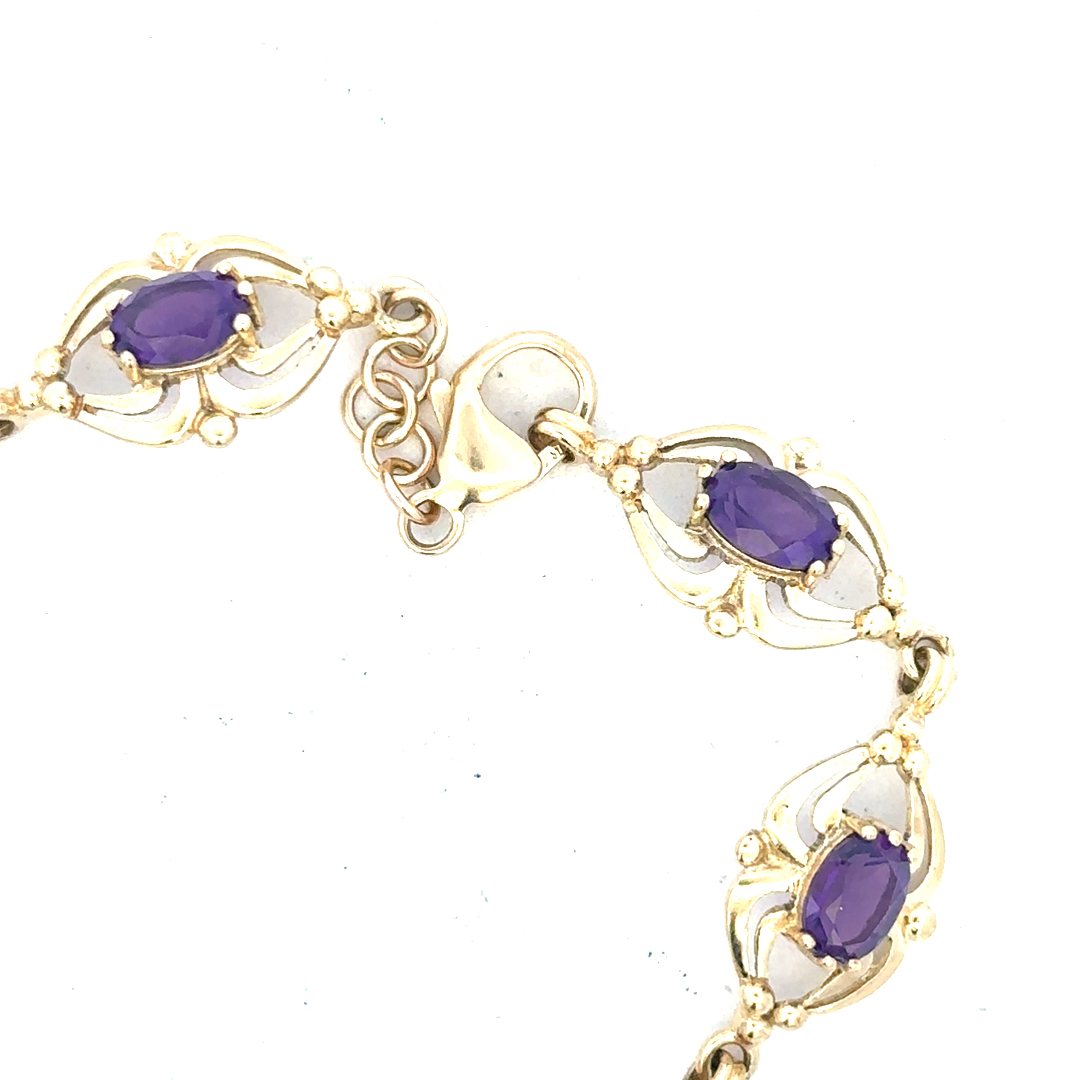 9ct yellow gold amethyst bracelet 10.1g (Sh25473b)