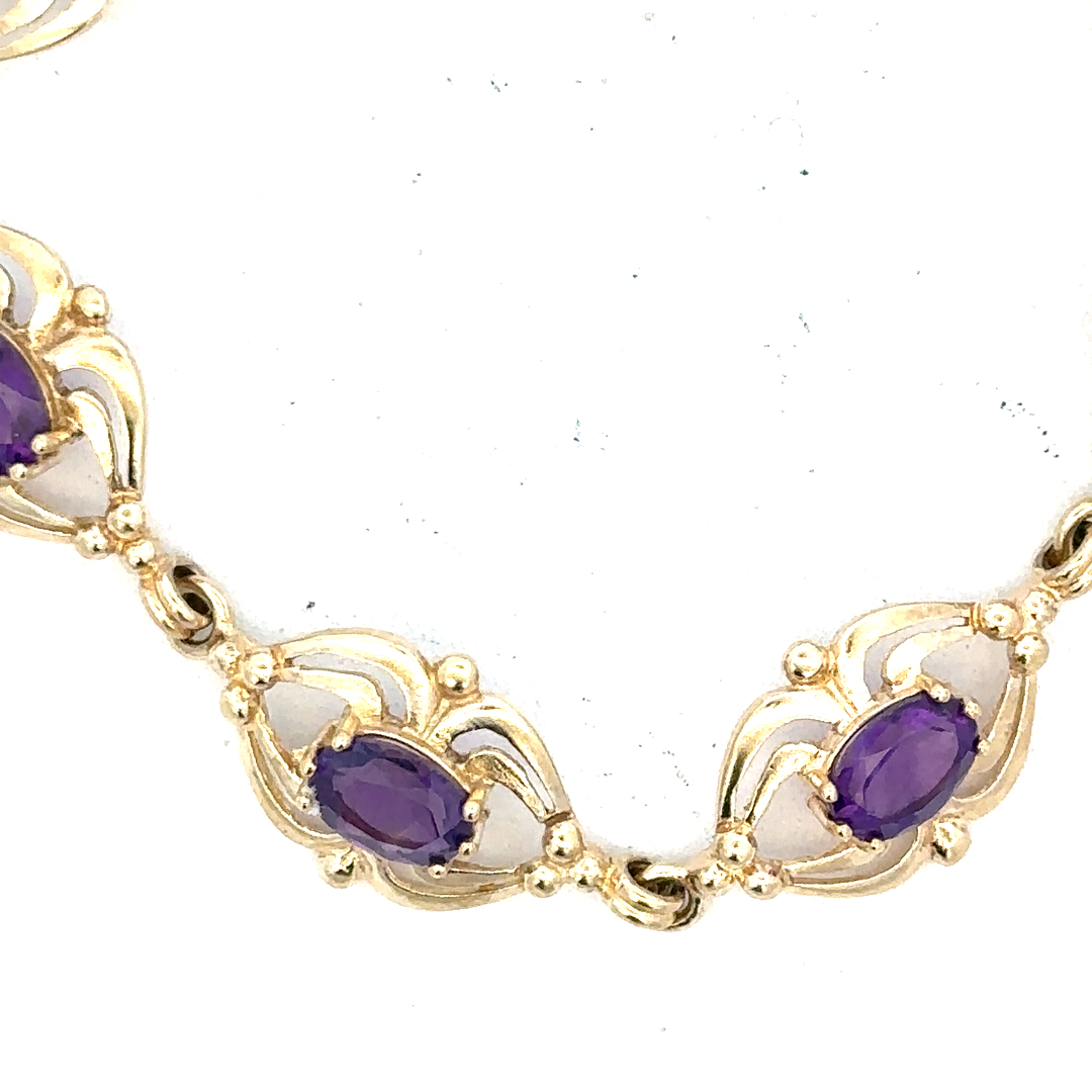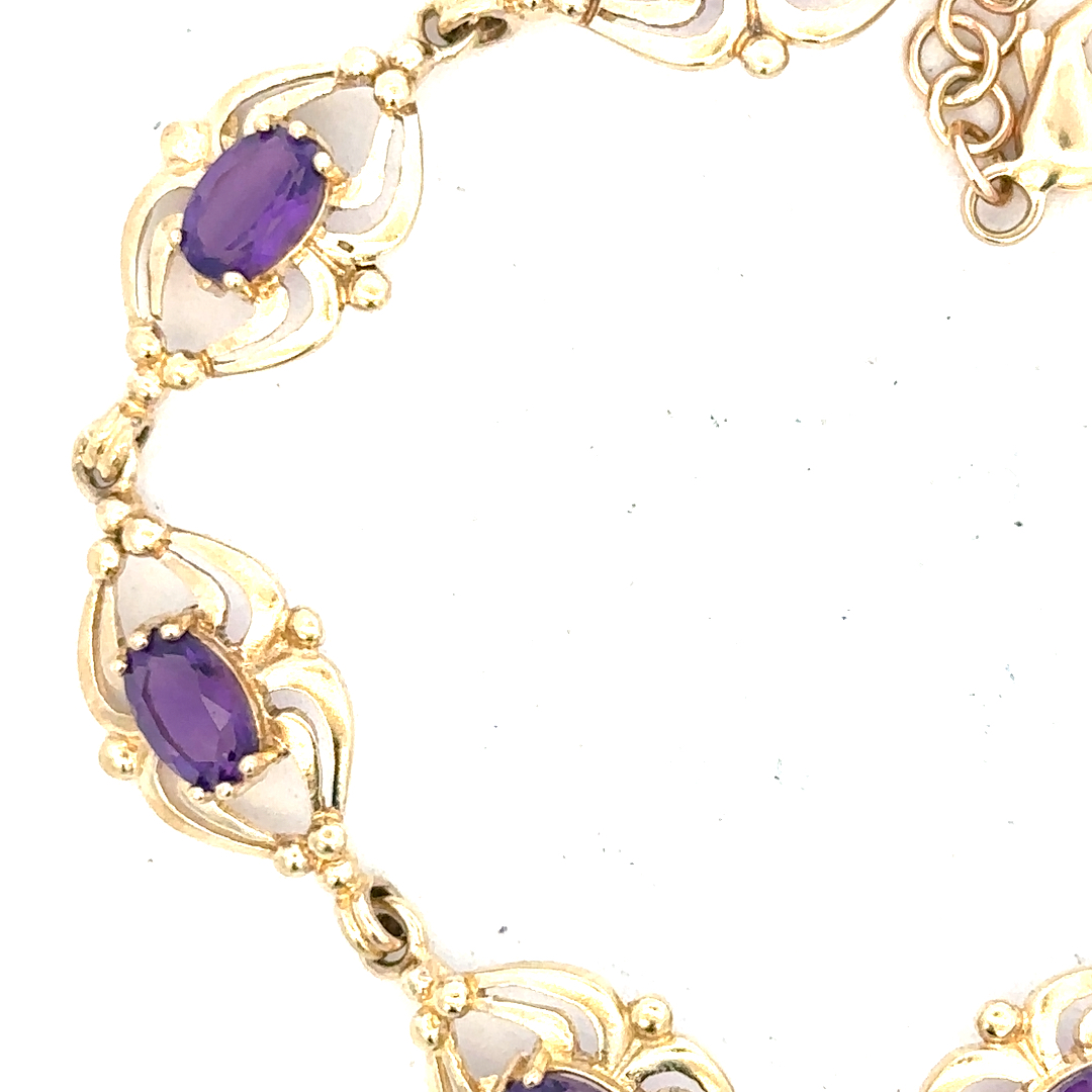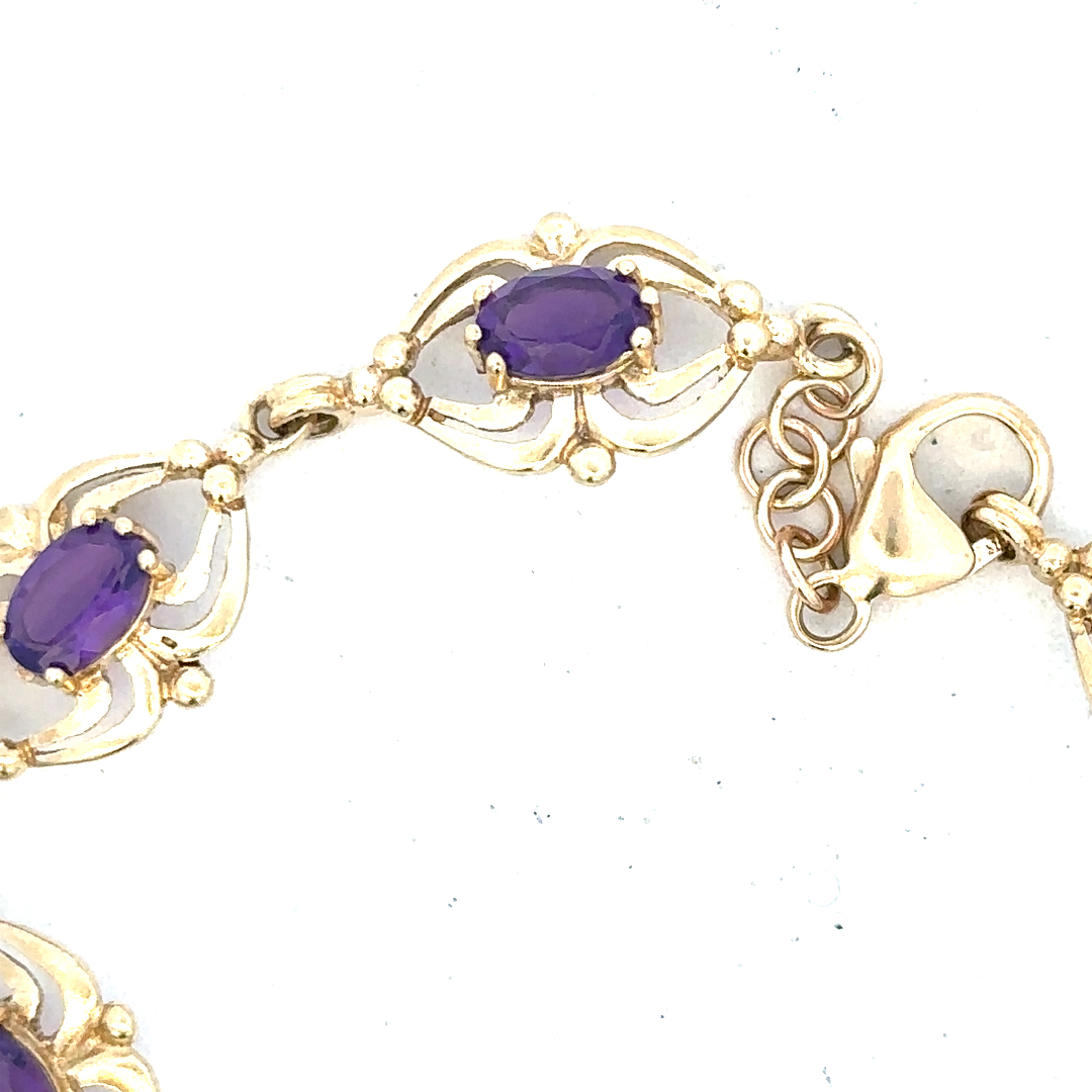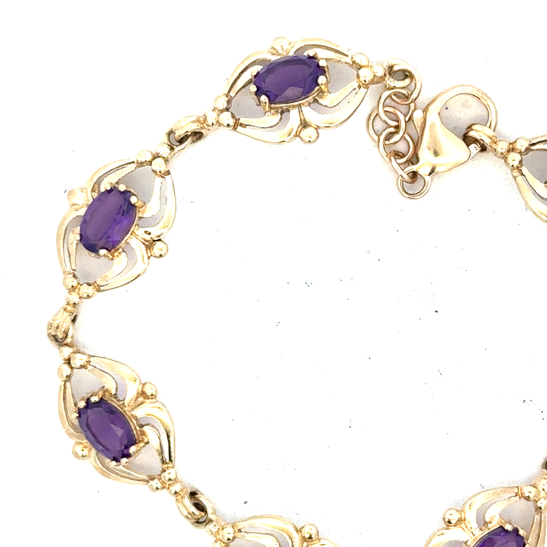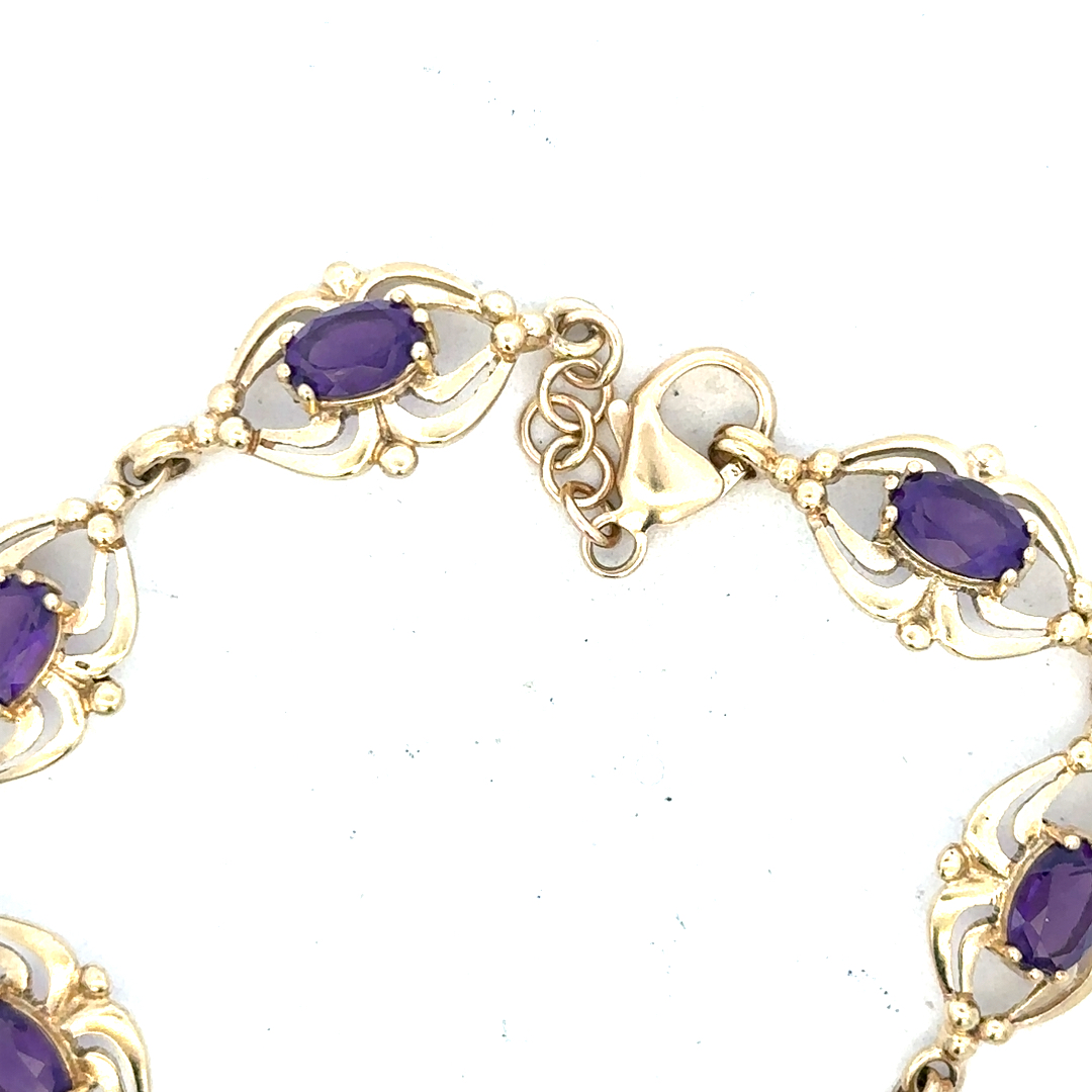 9ct yellow gold amethyst bracelet 10.1g (Sh25473b)