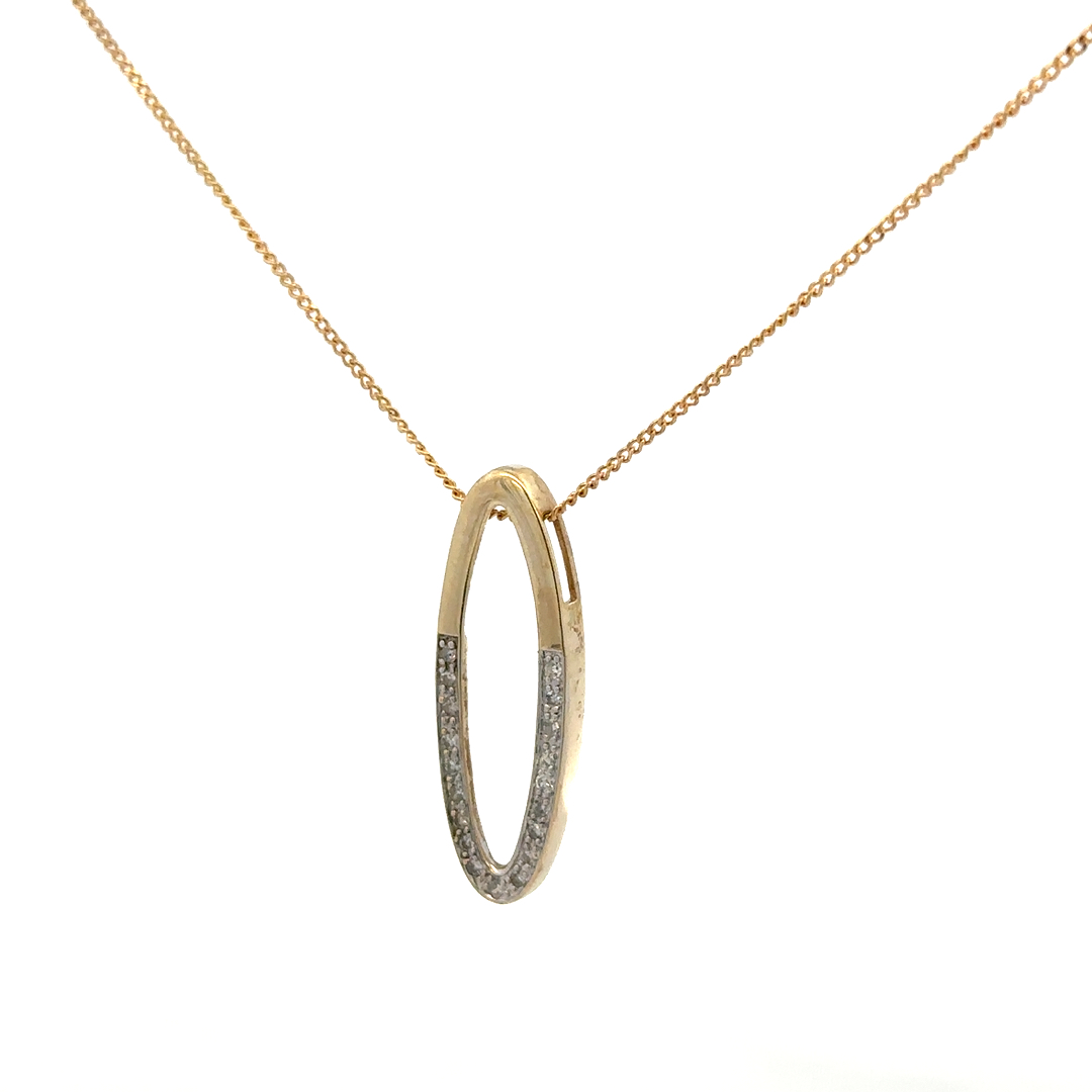 9ct yellow gold chain and diamond pendant 3g (sh24327l)