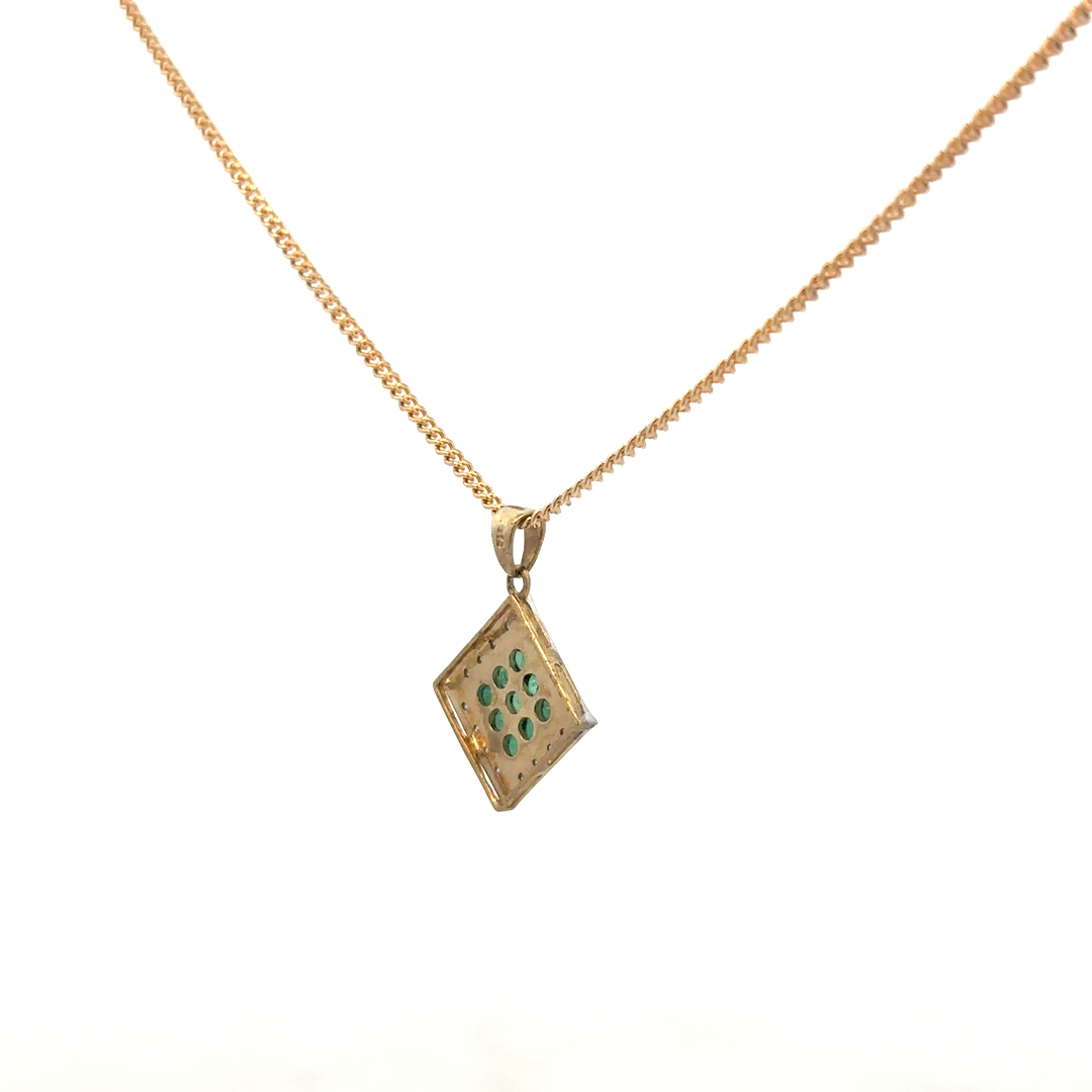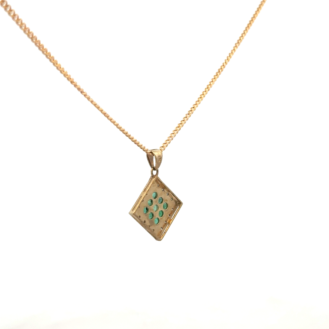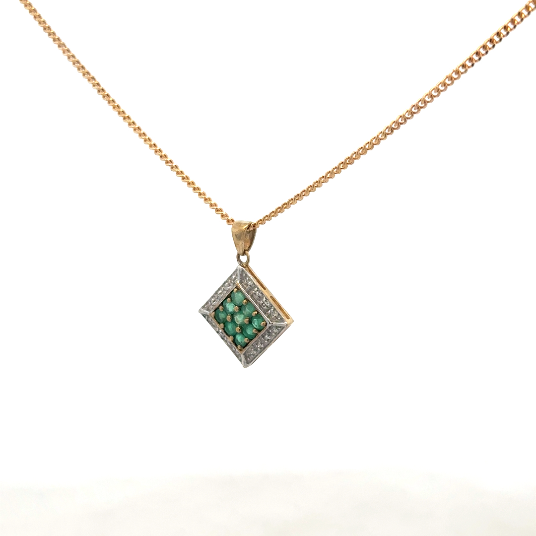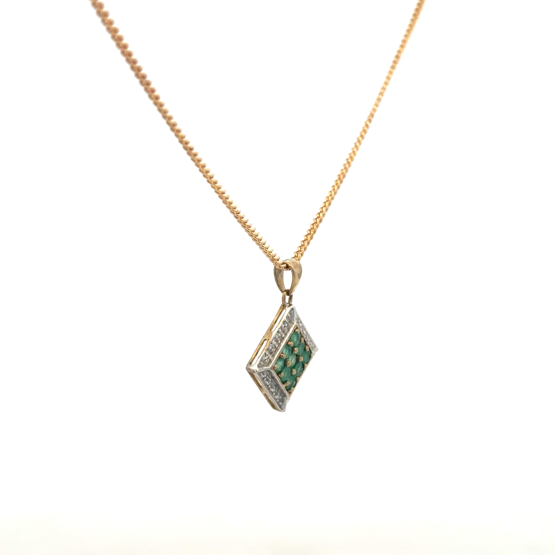 9ct yellow gold chain and emerald and diamond pendant