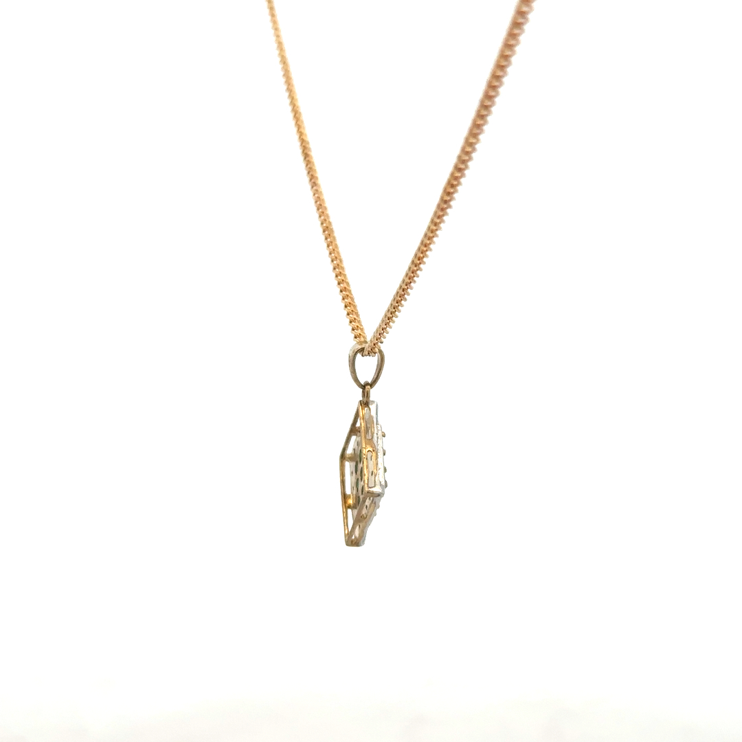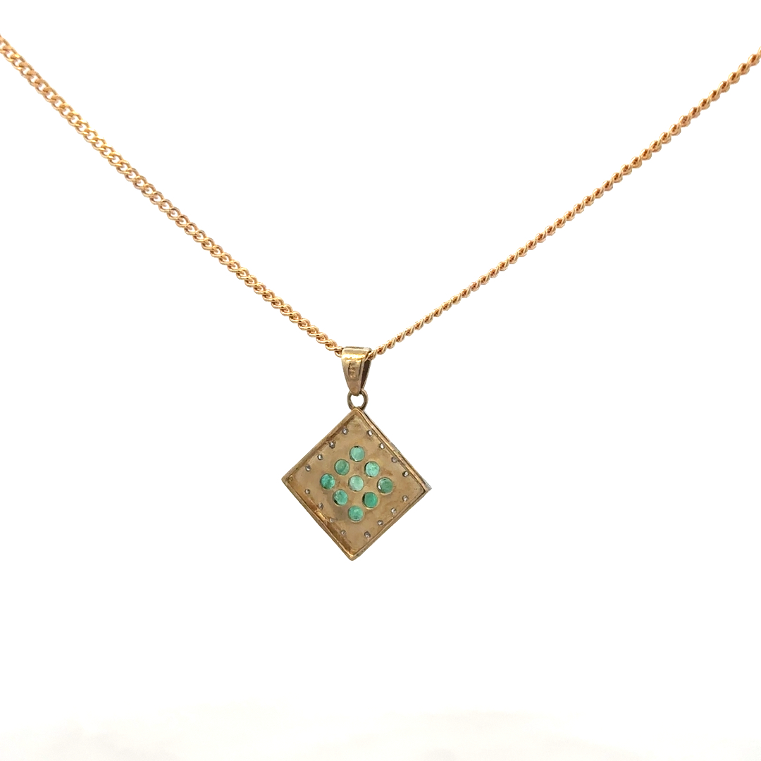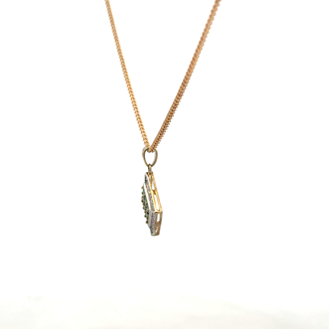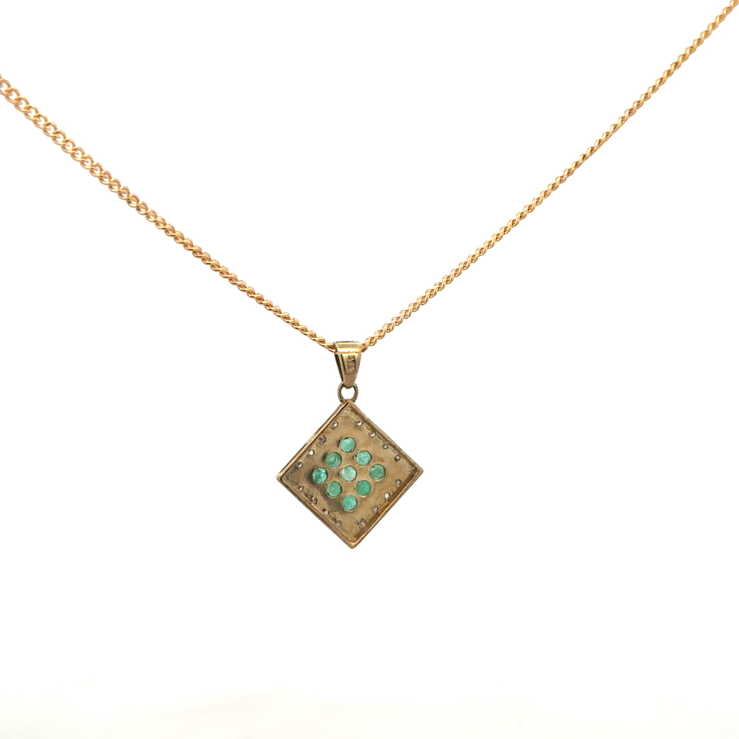 9ct yellow gold chain and emerald and diamond pendant