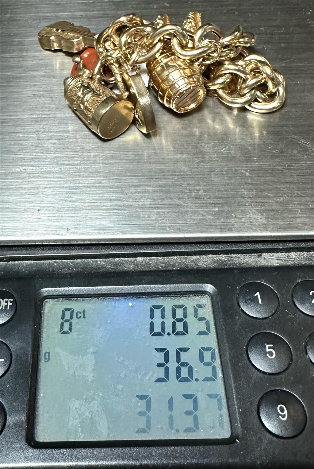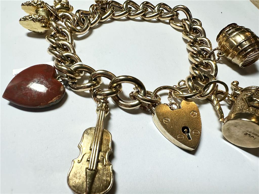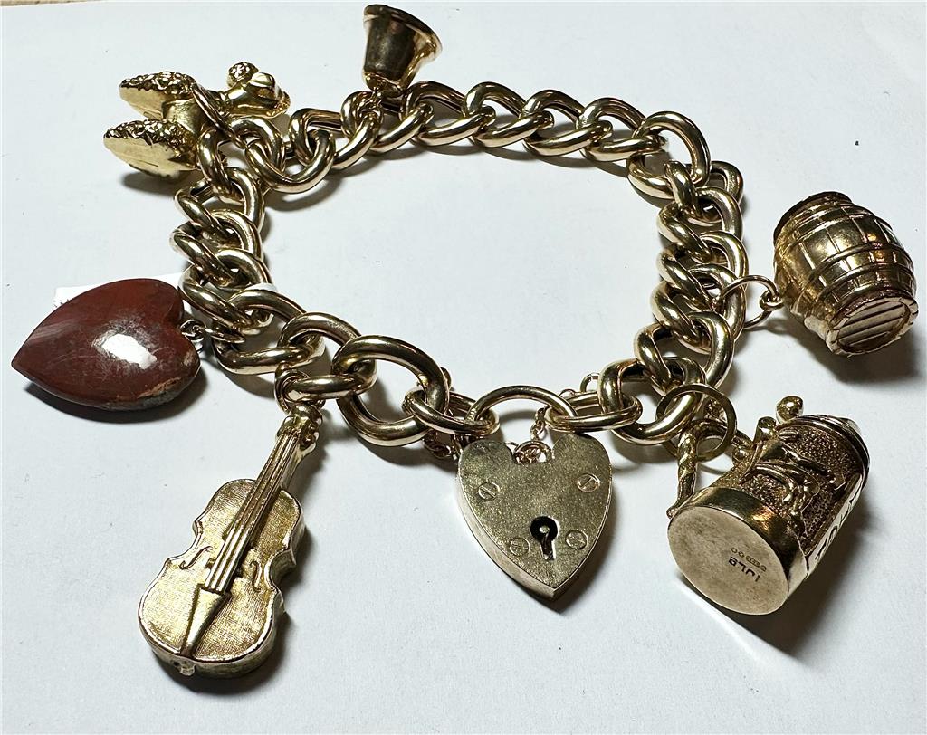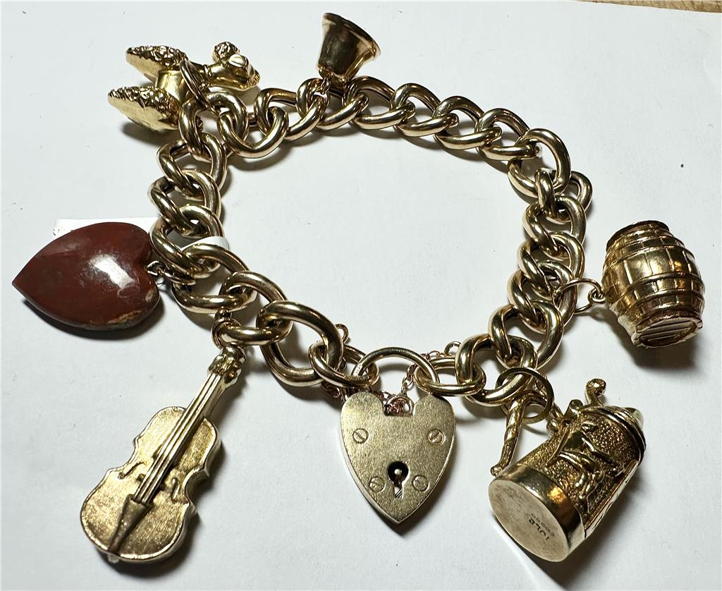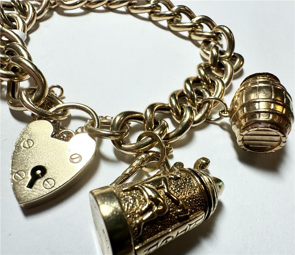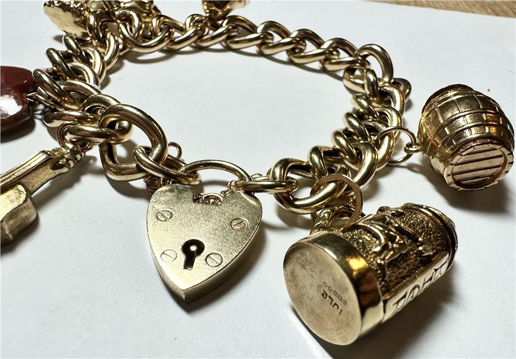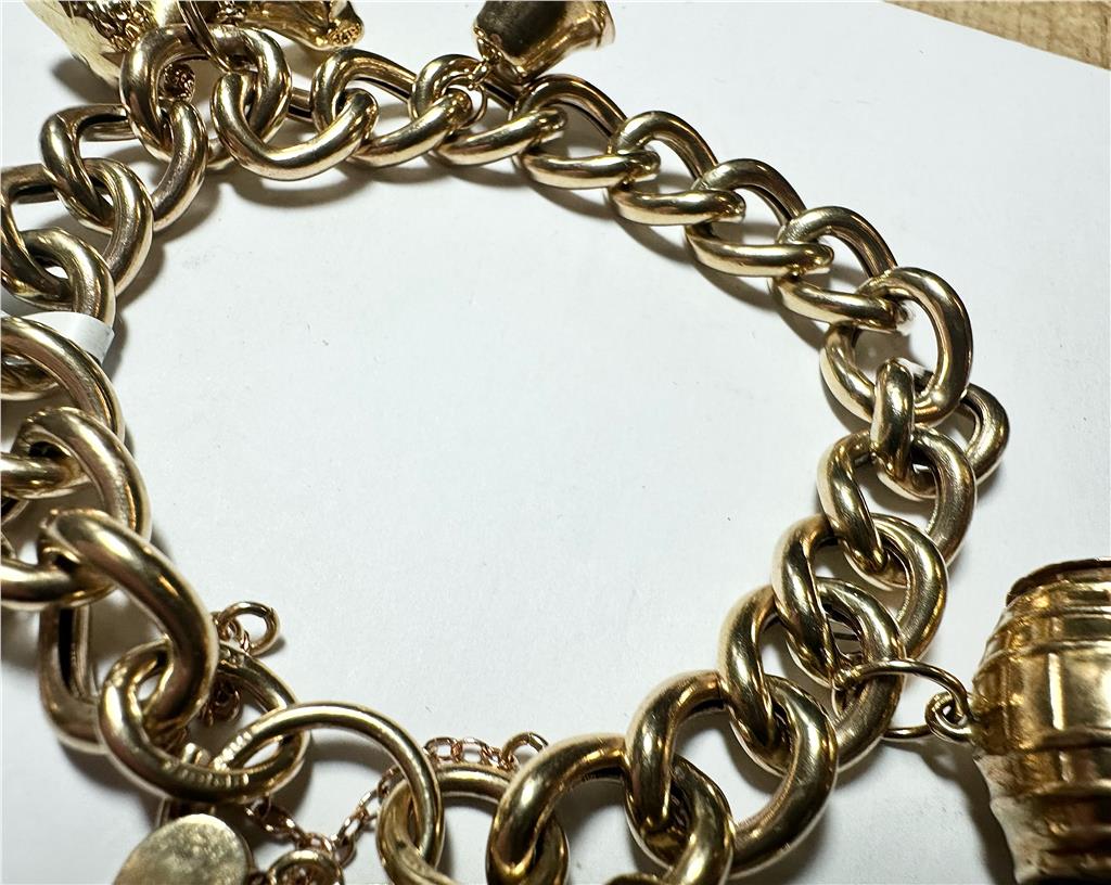 9ct yellow gold charm bracelet 36.9g (sh22898l)