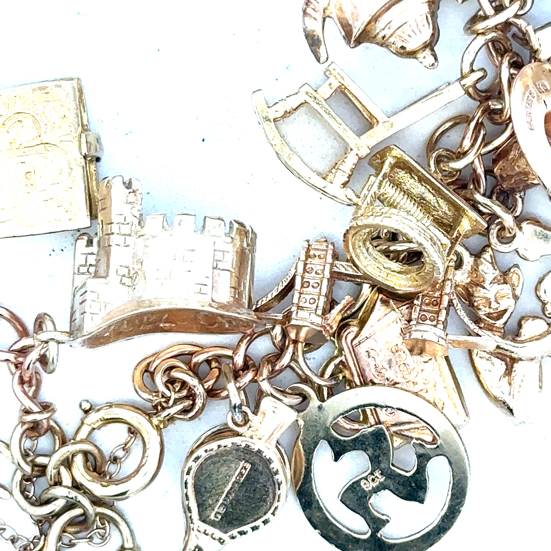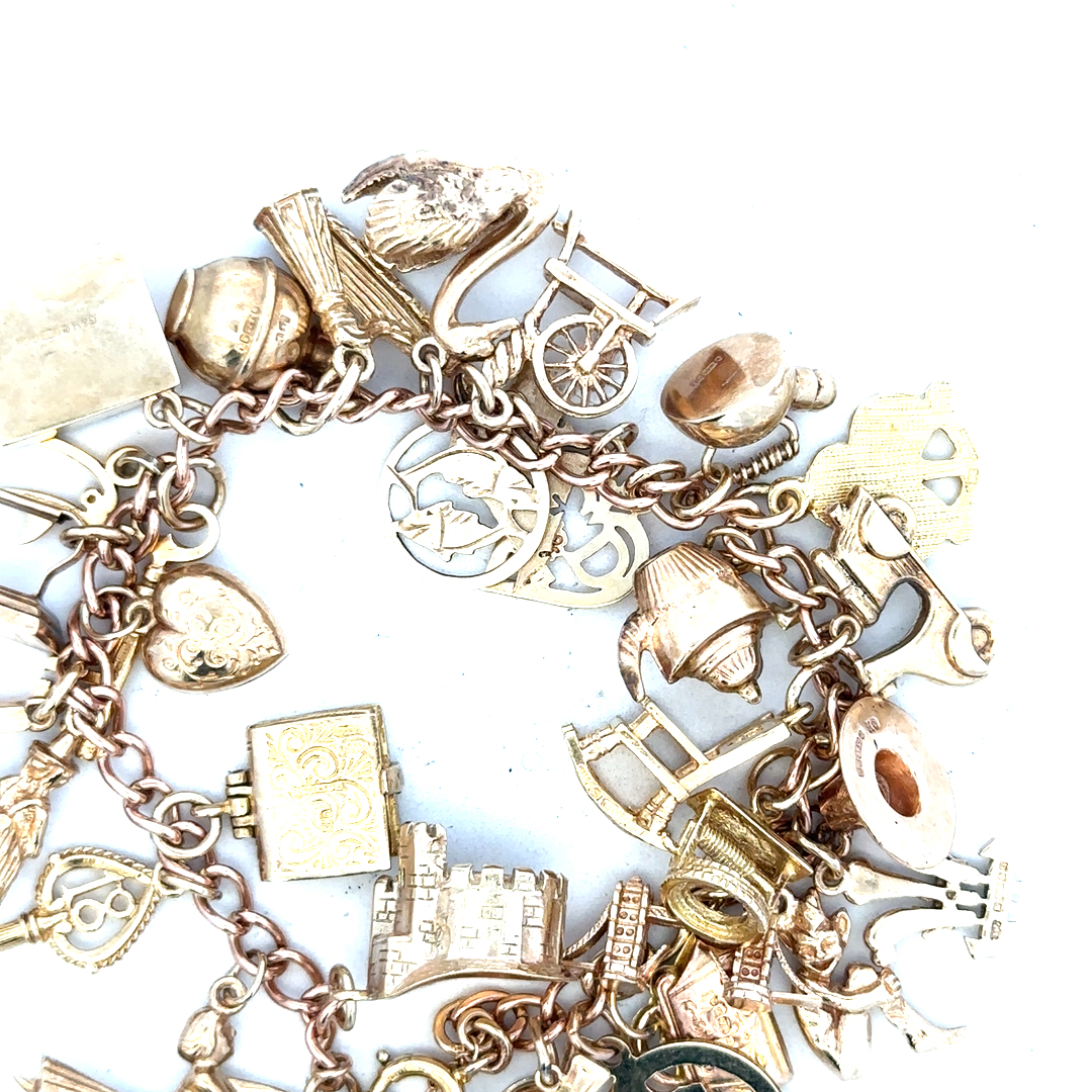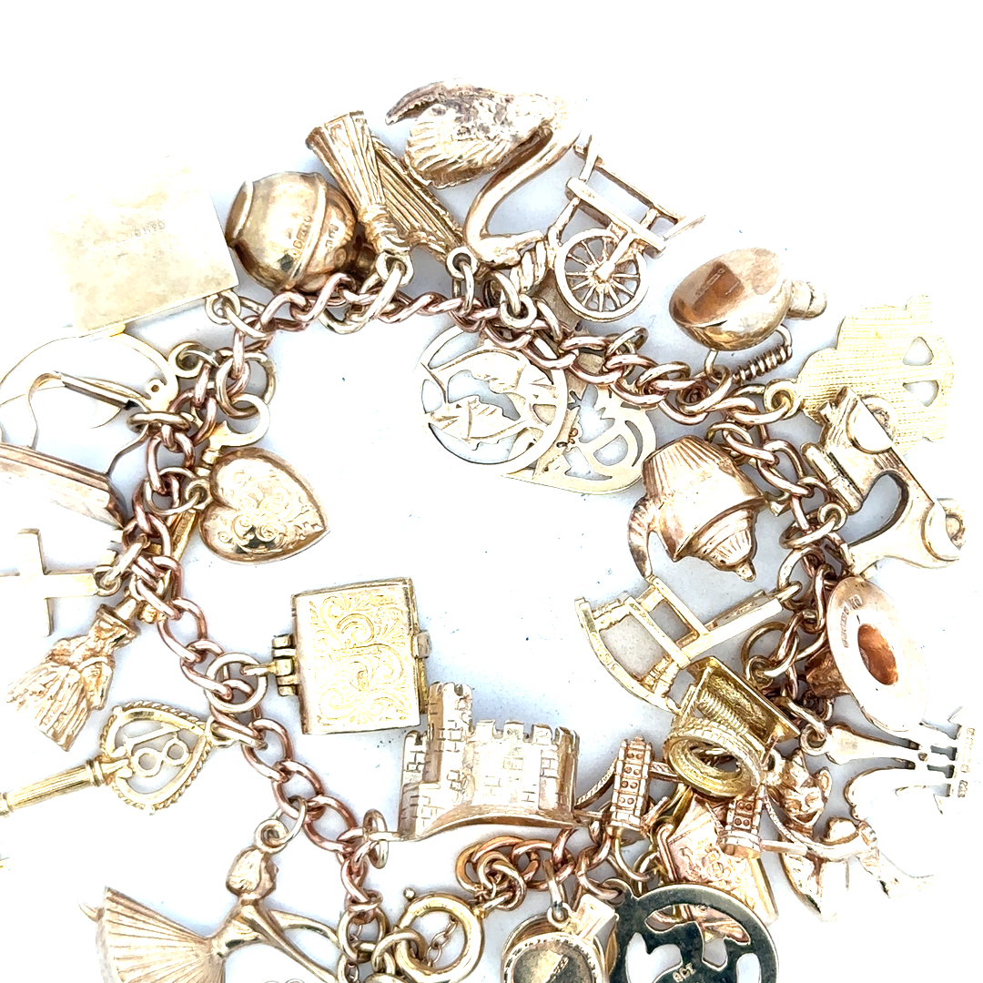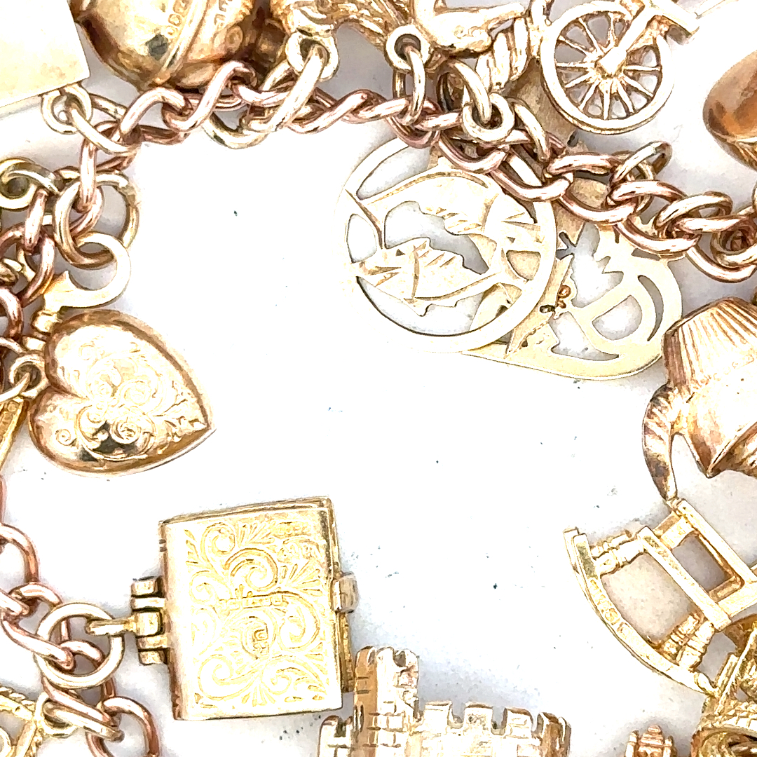 9ct yellow gold charm bracelet 52.4g (sh25459b)