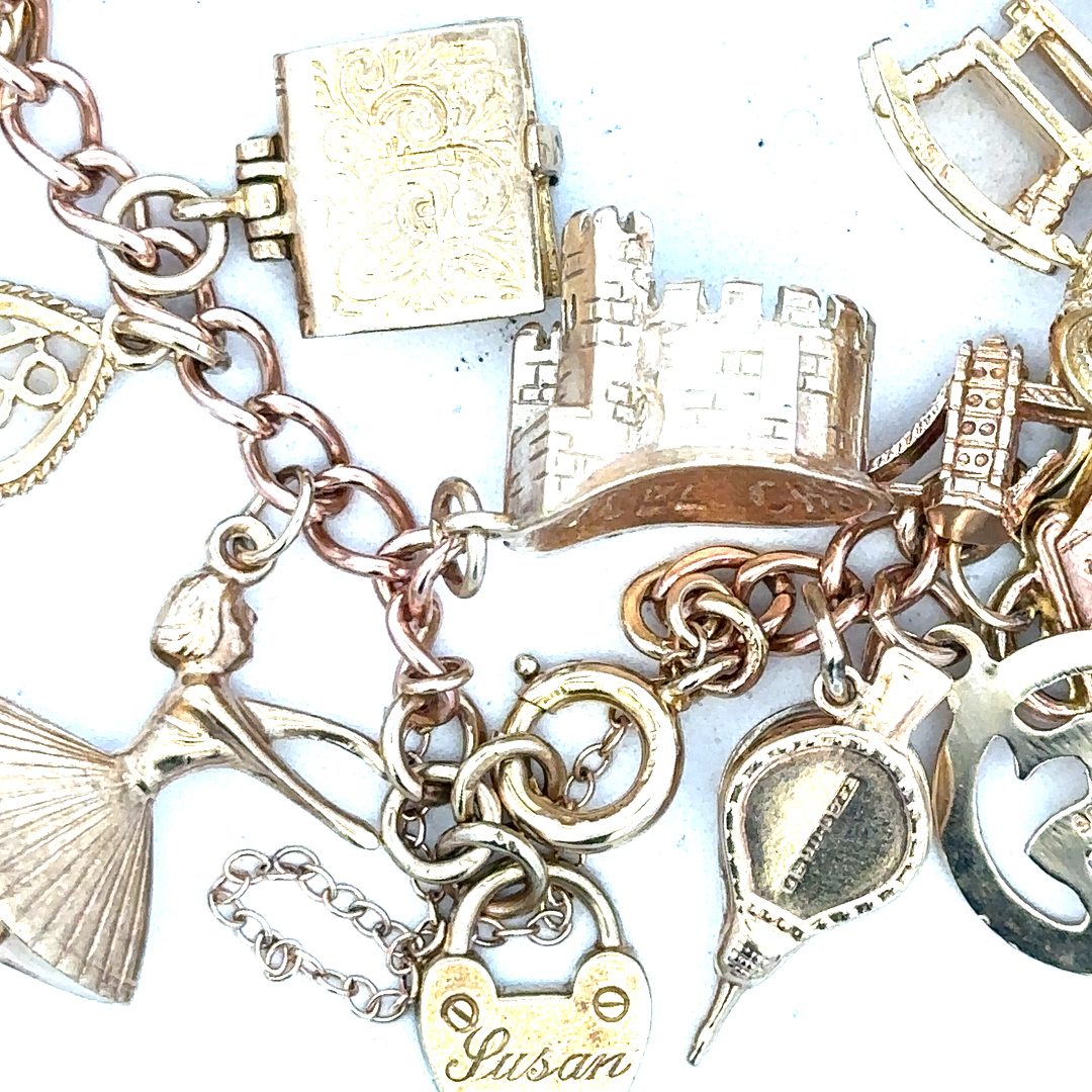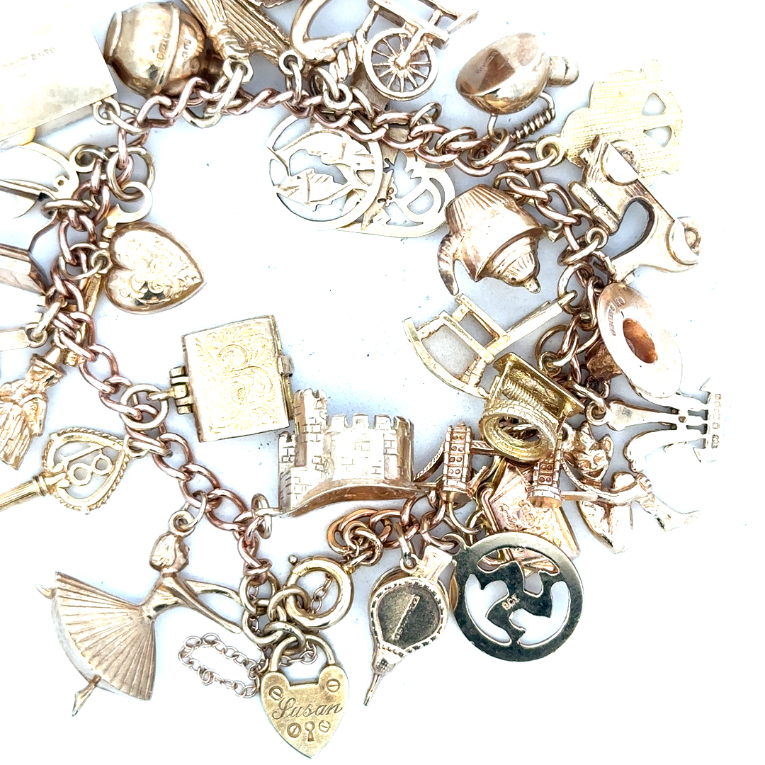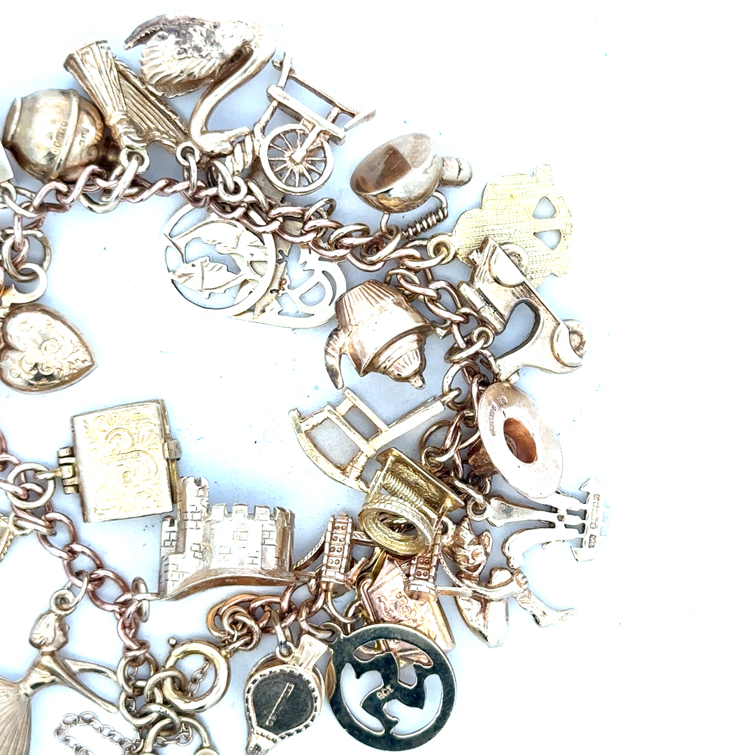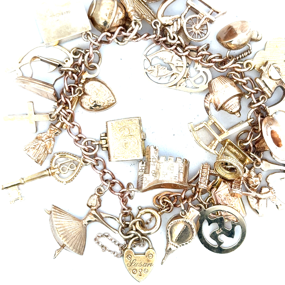 9ct yellow gold charm bracelet 52.4g (sh25459b)