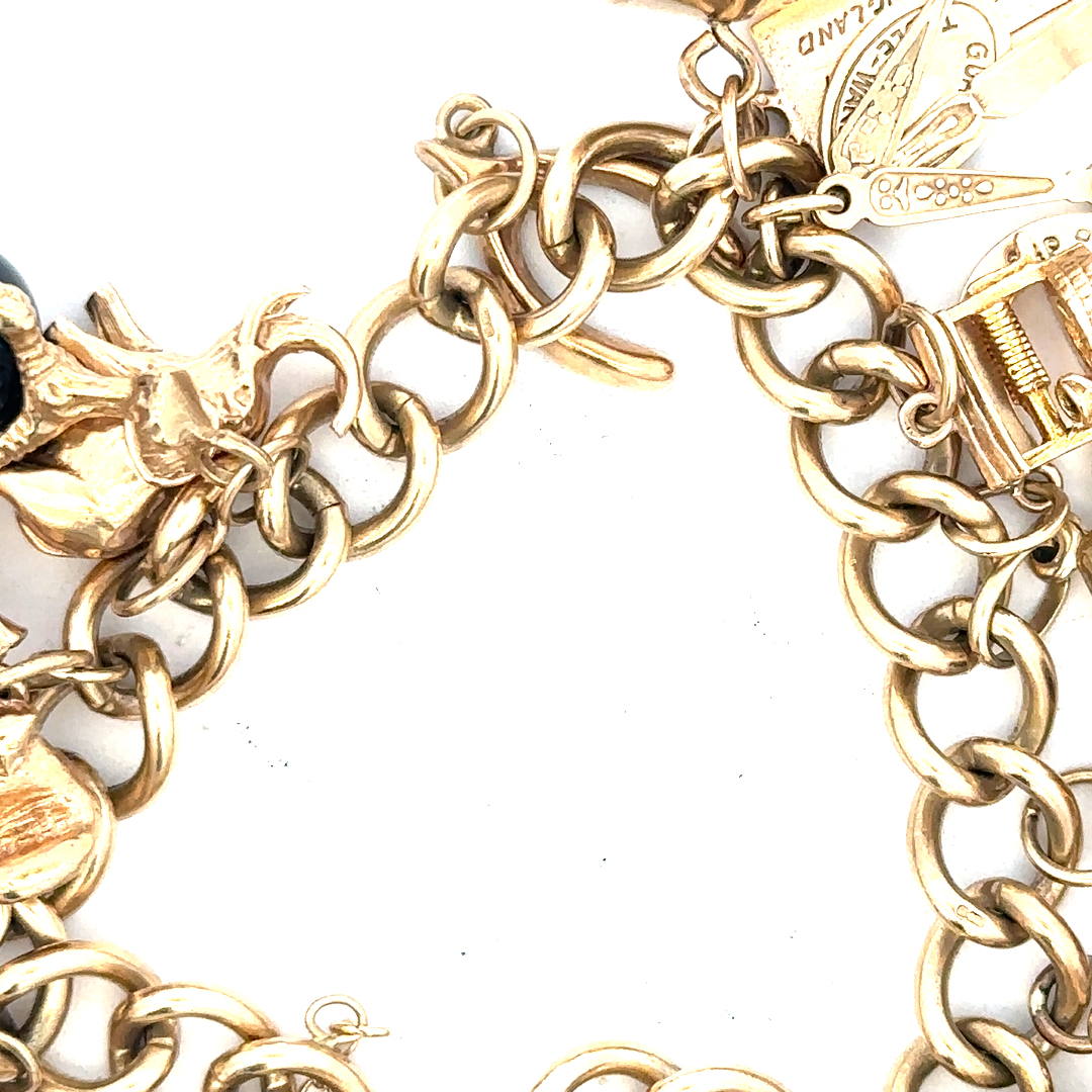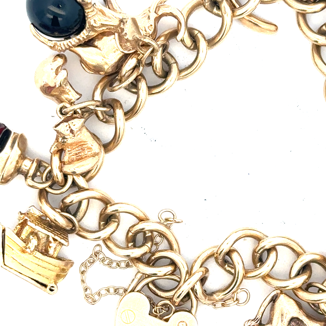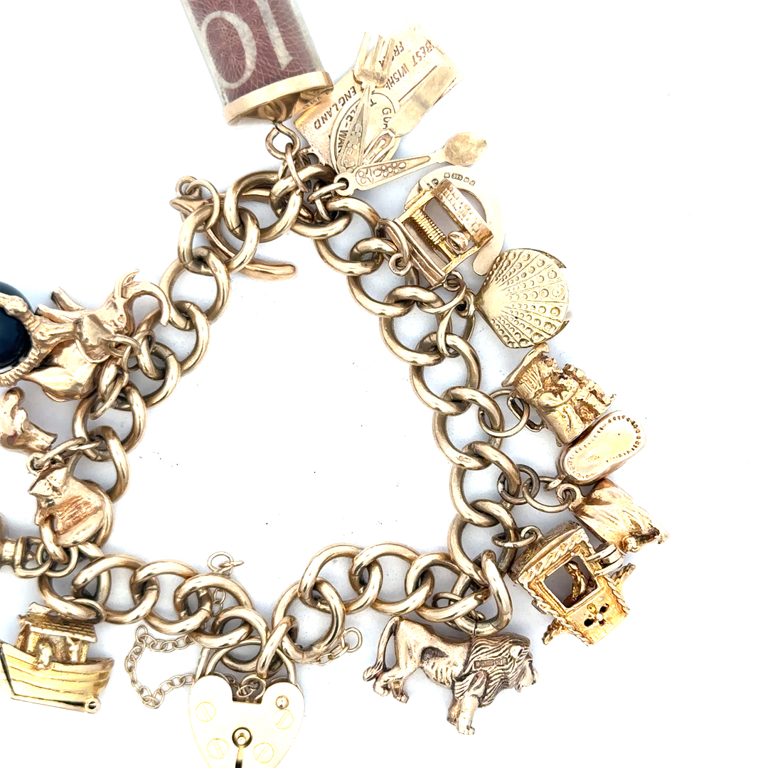 9ct yellow gold charm bracelet 57.2g (sh24030l)
