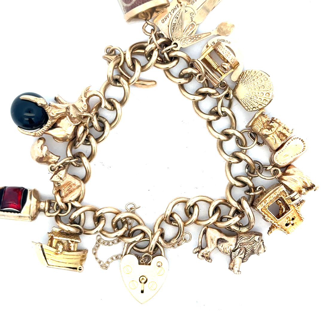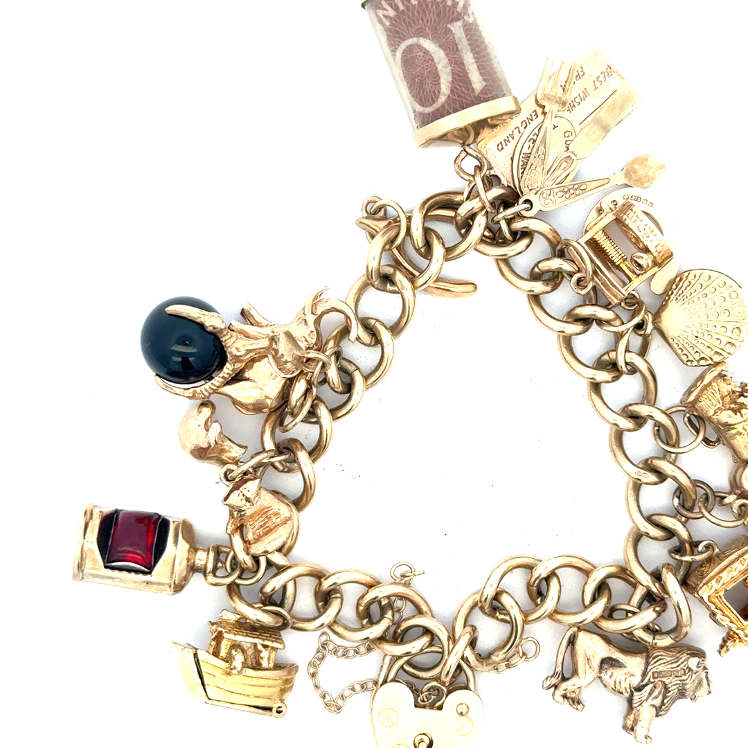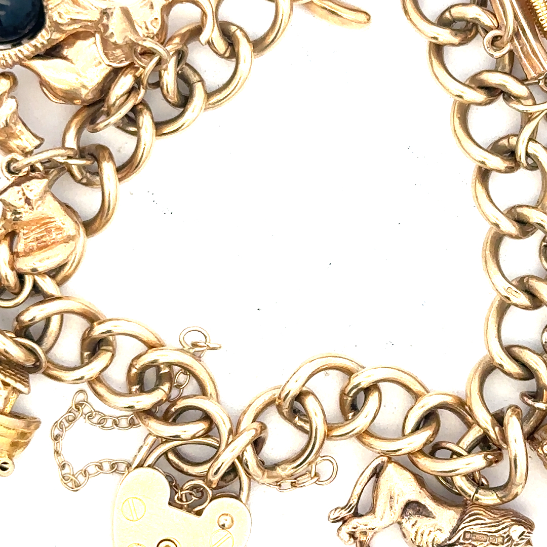 9ct yellow gold charm bracelet 57.2g (sh24030l)
