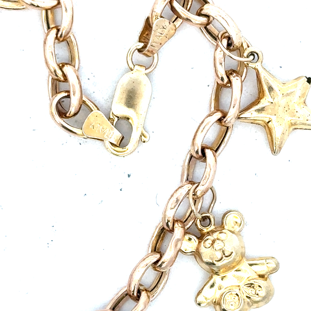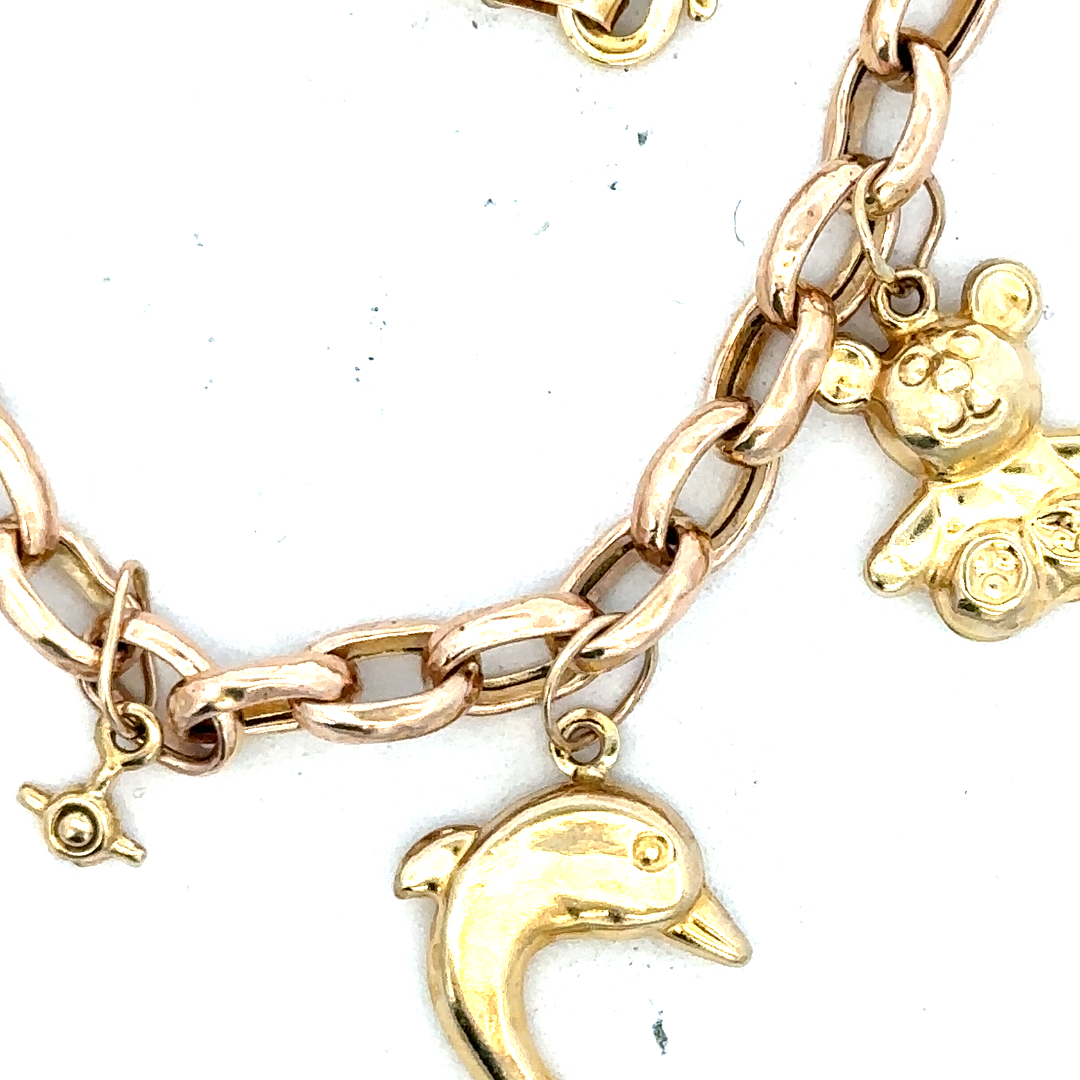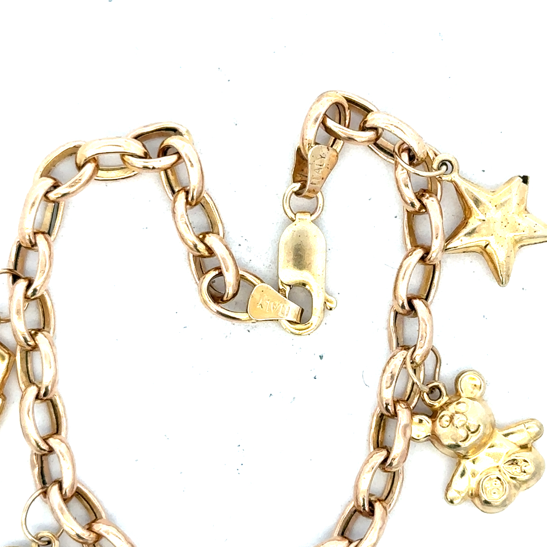 9ct yellow gold charm bracelet 8.6g (sh24555l)