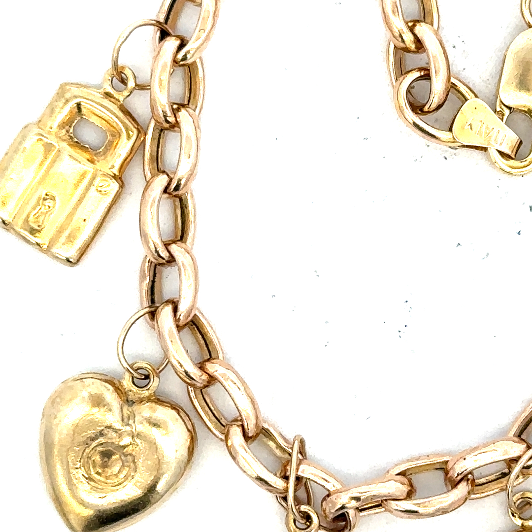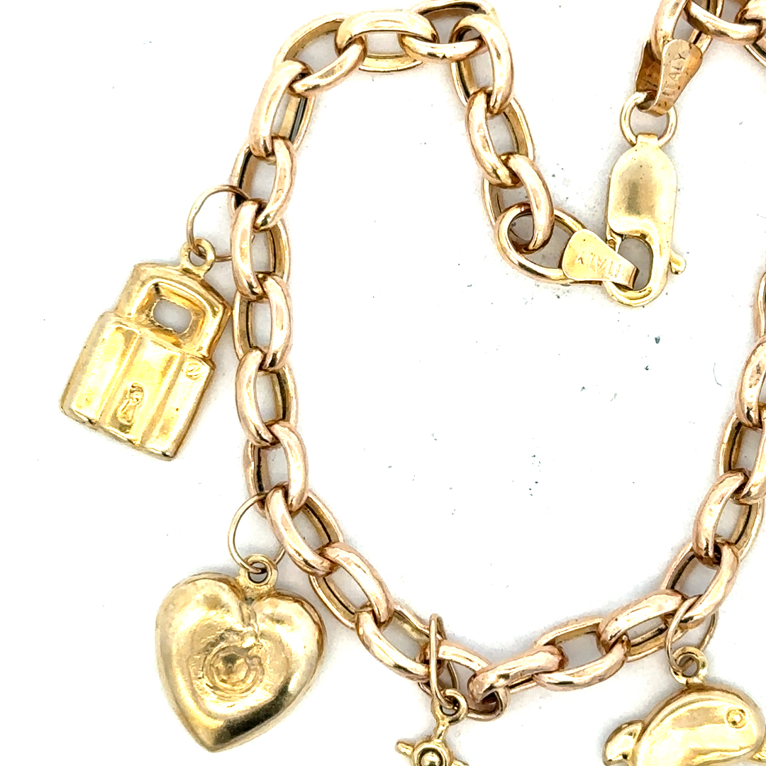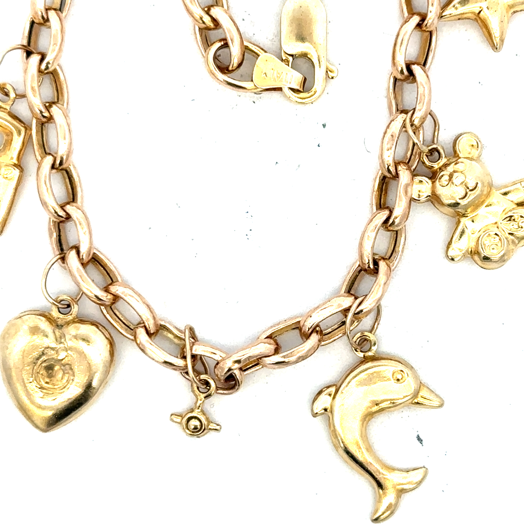 9ct yellow gold charm bracelet 8.6g (sh24555l)