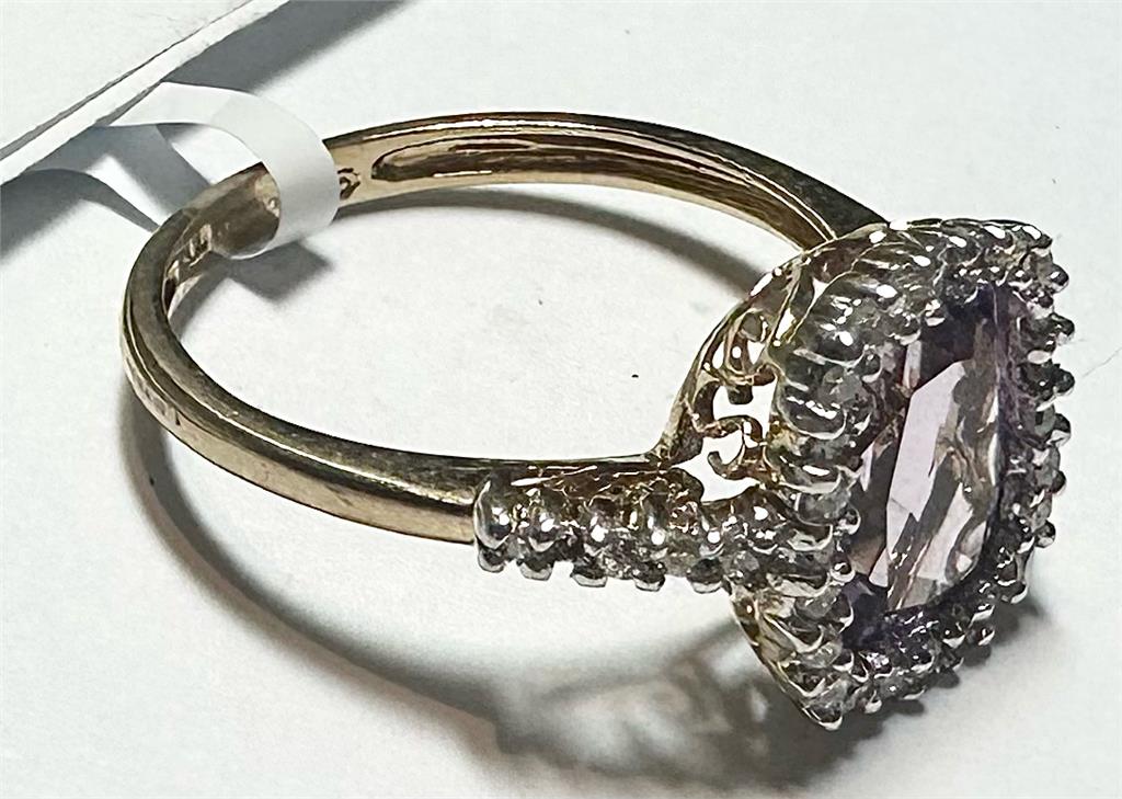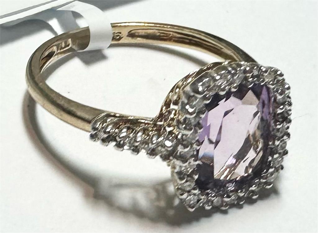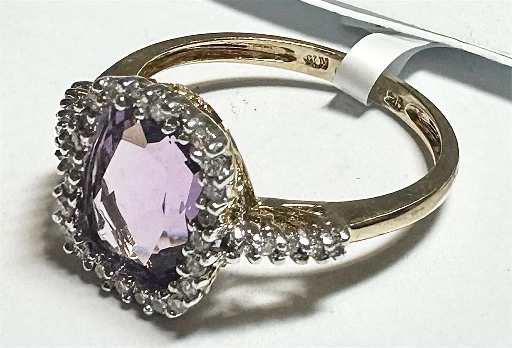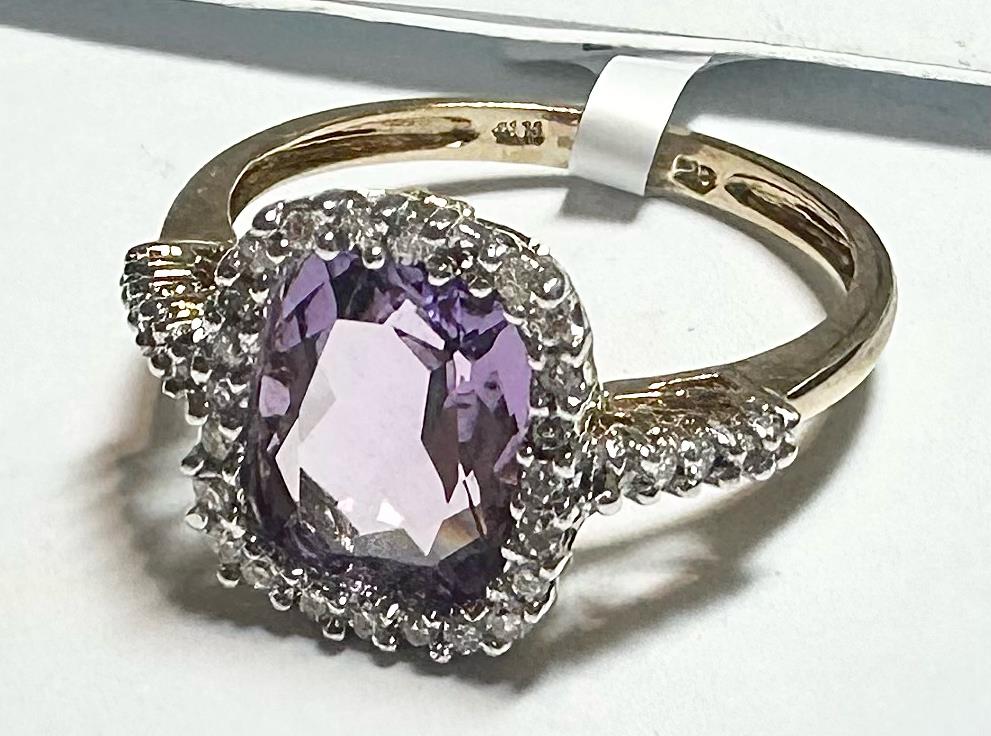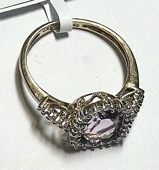 9ct yellow gold diamond and amethyst ring size O