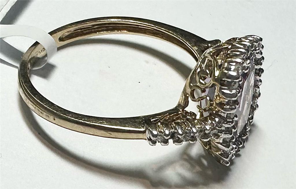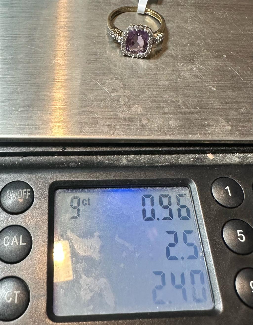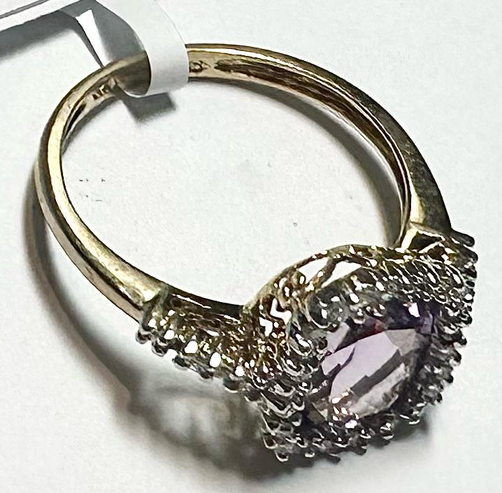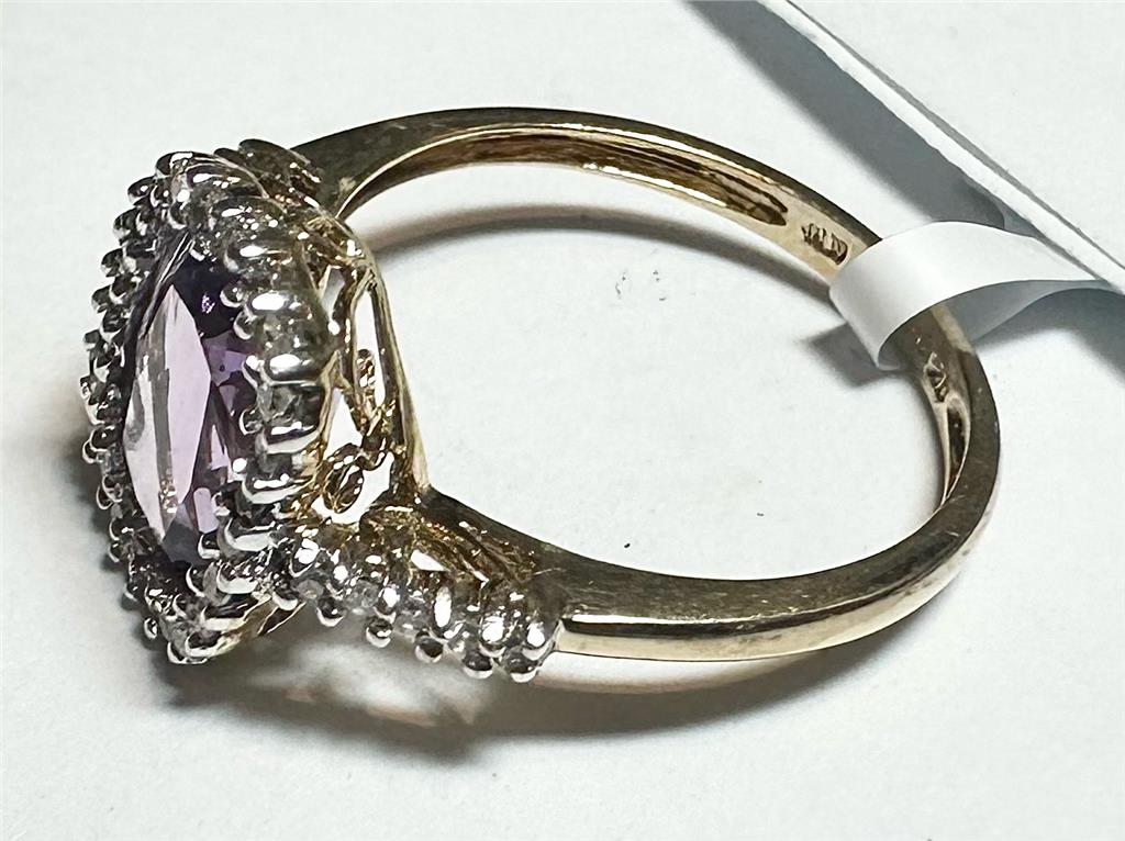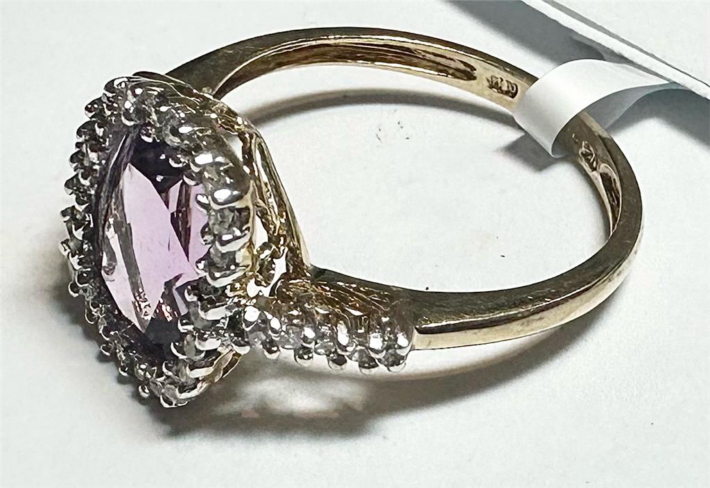 9ct yellow gold diamond and amethyst ring size O