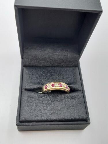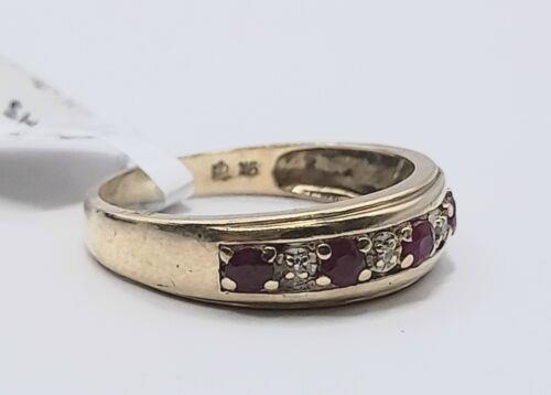 9ct Yellow Gold Diamond And Ruby Ring Size M 2.3g