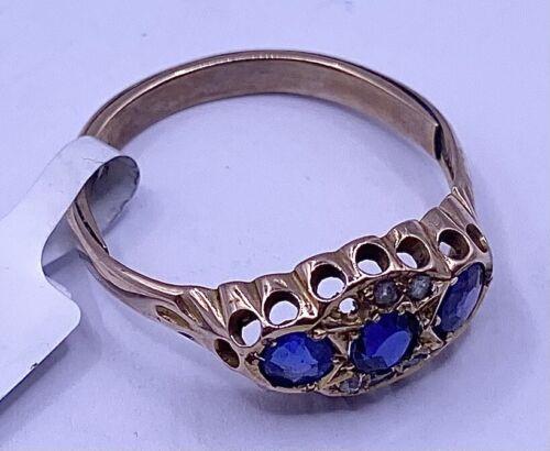 9ct Yellow Gold Diamond And Sapphire Ring Size M