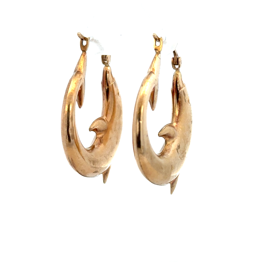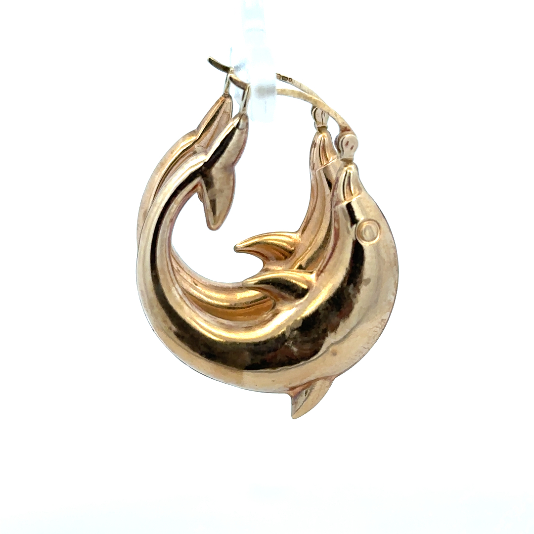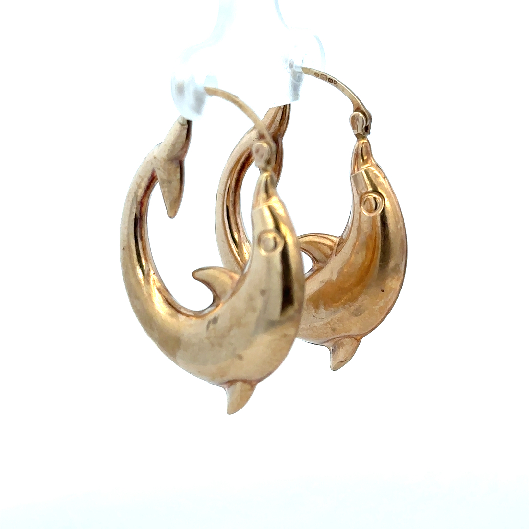 9ct yellow gold dolphin hoop earrings