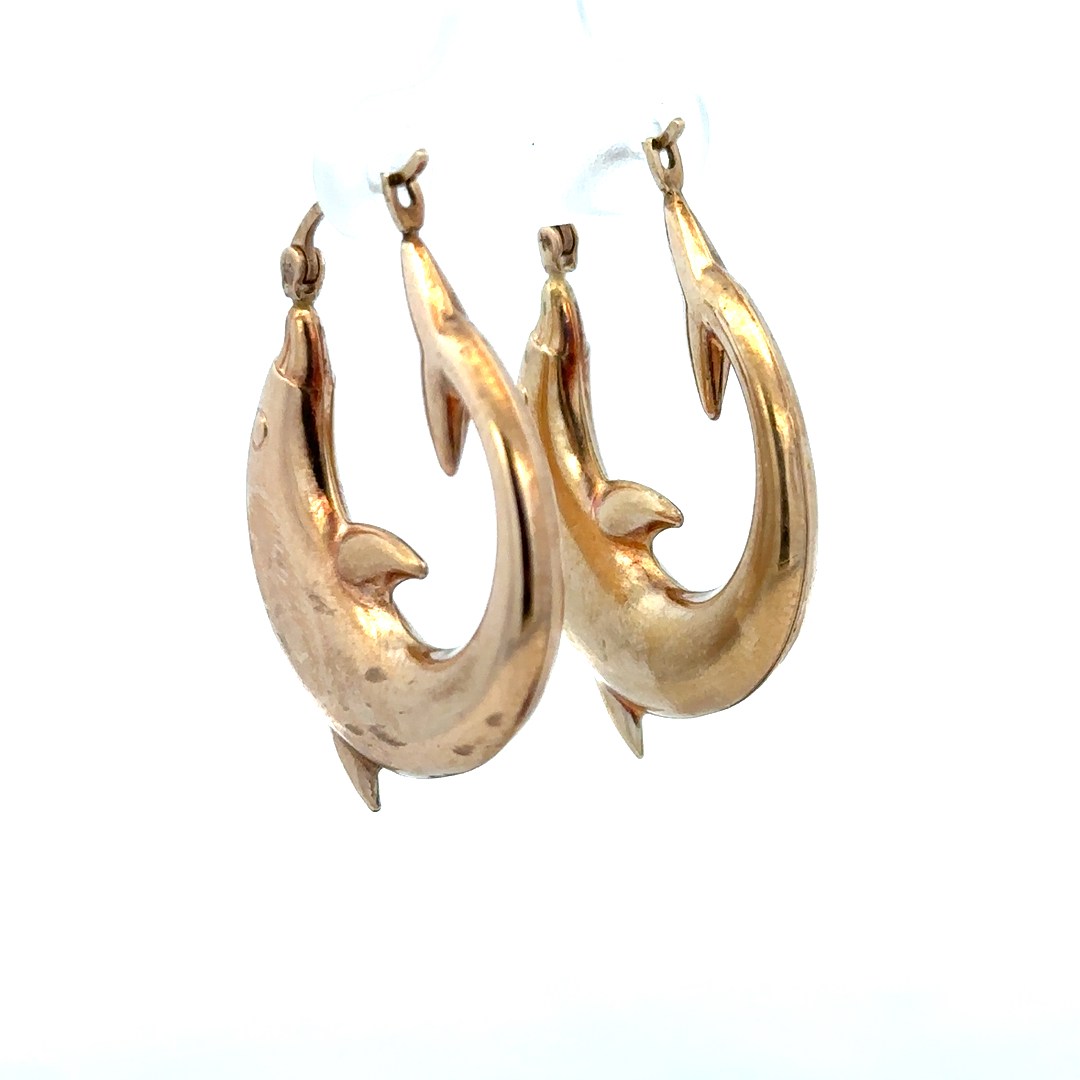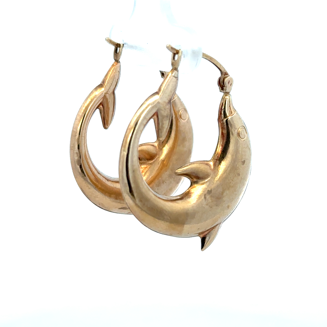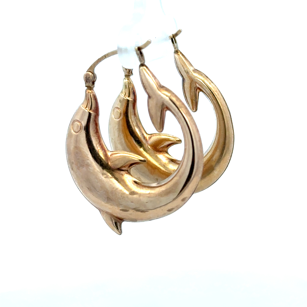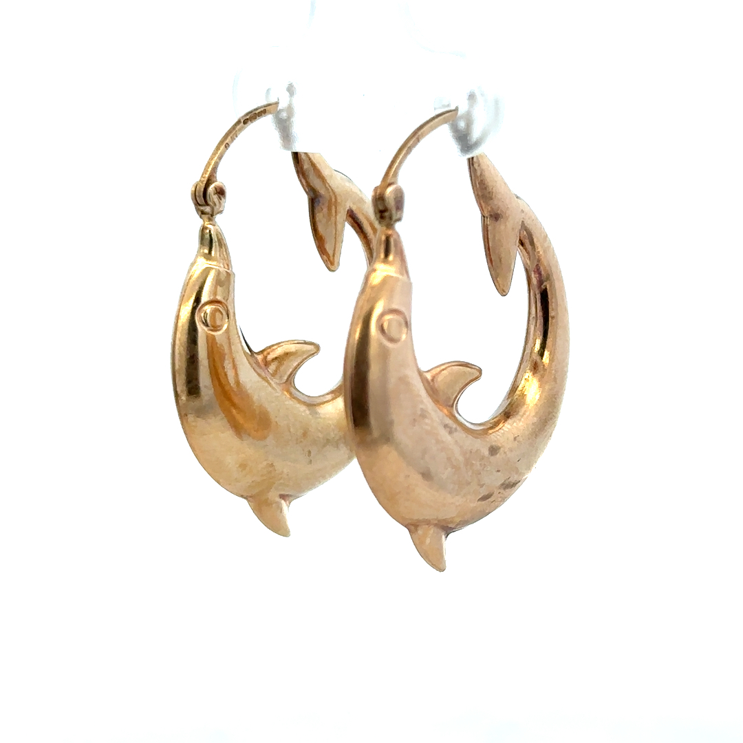 9ct yellow gold dolphin hoop earrings