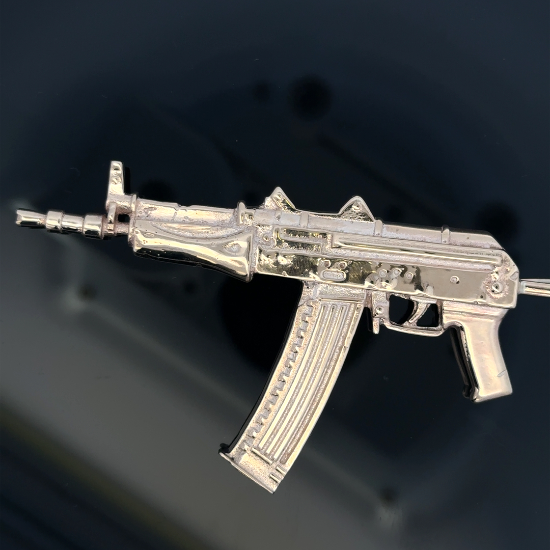 9ct yellow gold gun pendant 64.9g (sh23853b)