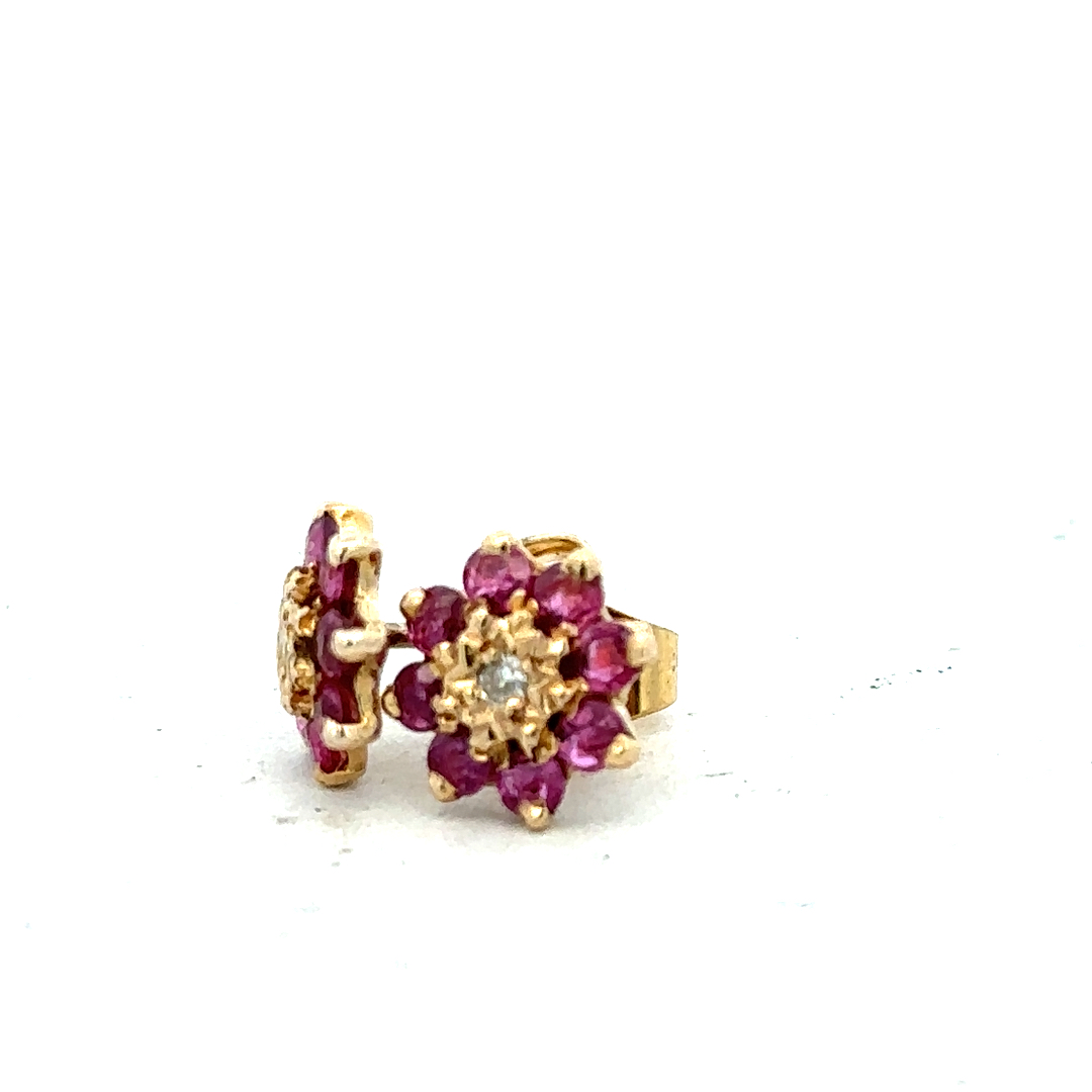 9ct yellow gold ruby and diamond earrings 1.6g (sh24171l)