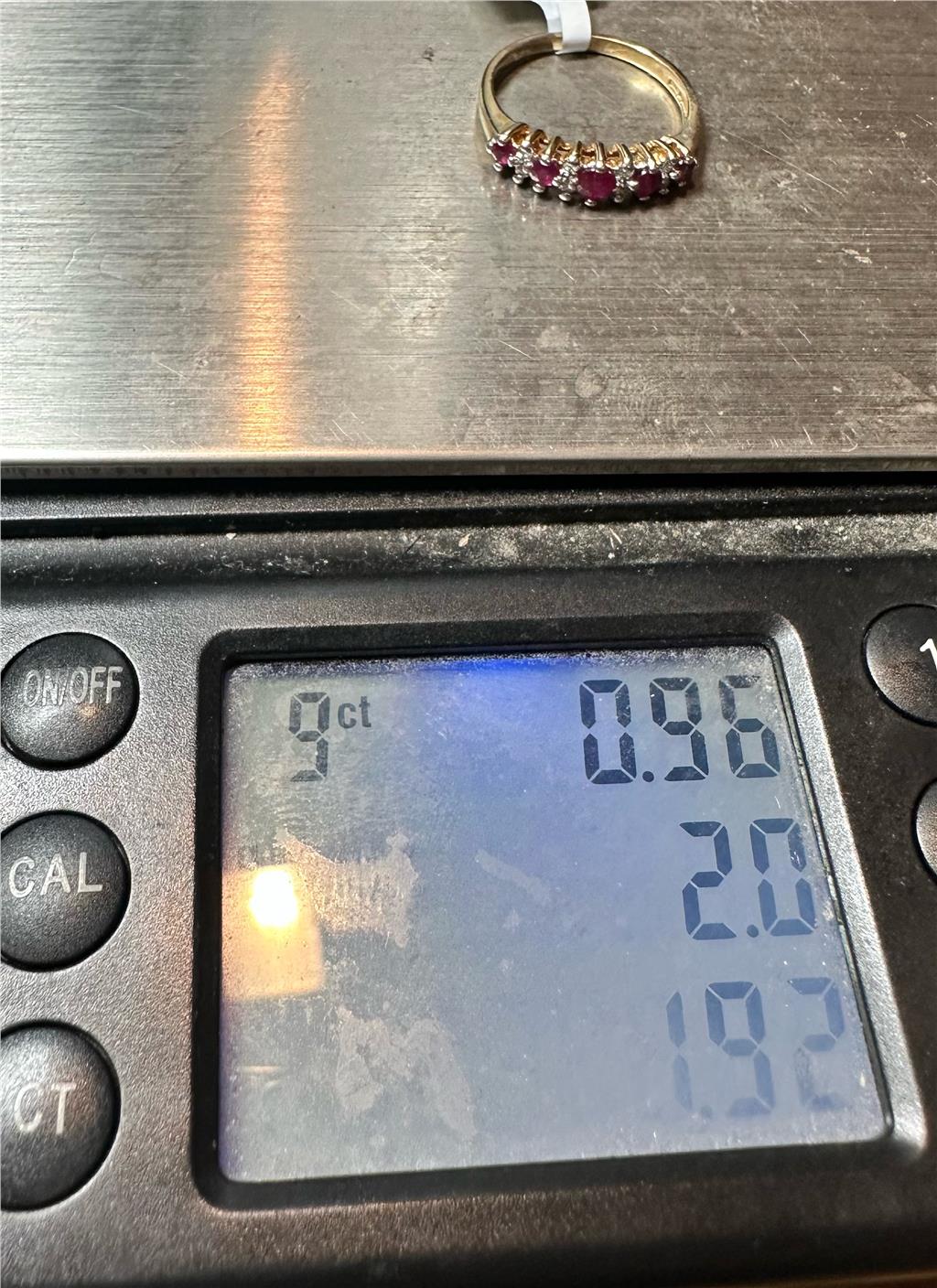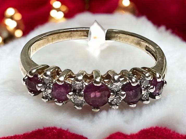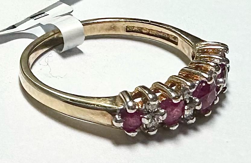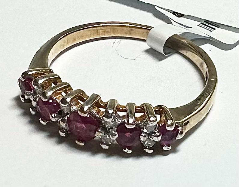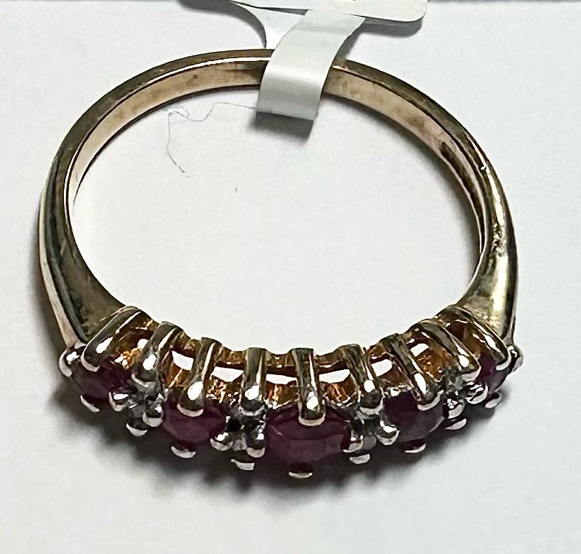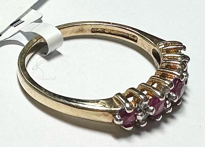 9ct yellow gold ruby and diamond ring size J1/2