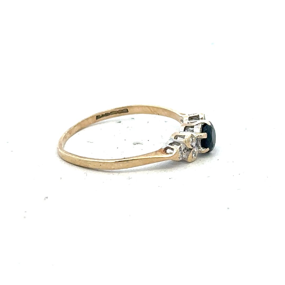 9ct yellow gold sapphire and diamond ring size O (sh25981b)